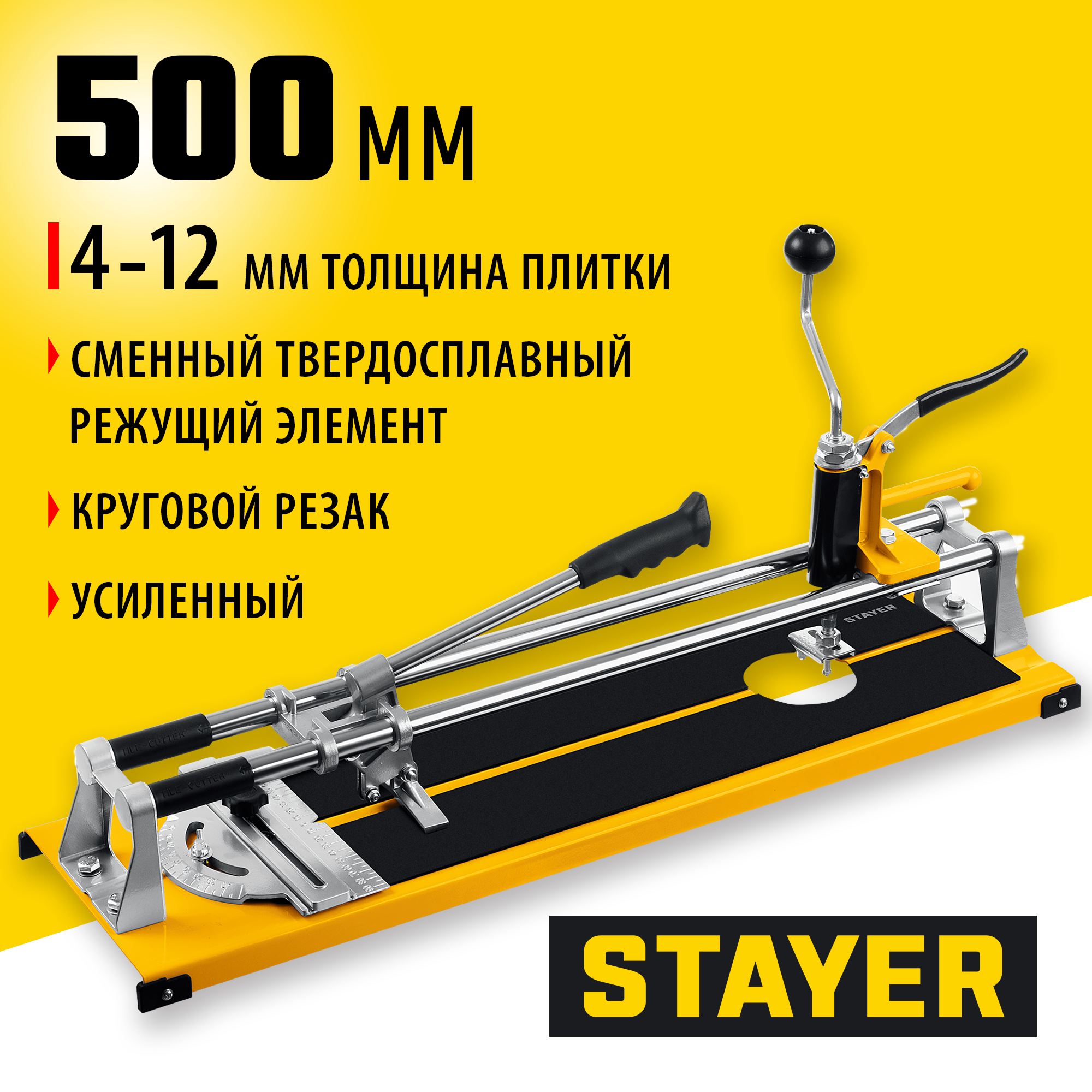 Плиткорез STAYER - правильный выбор! Оснащен сменным твердосплавным режущим элементом, . Металлические направляющие обеспечивают точный и плавный разрез керамической плитки. Усиленная платформа и опоры позволяют проводить работы с керамической плиткой повышенной толщины и увеличивают срок службы плиткореза.