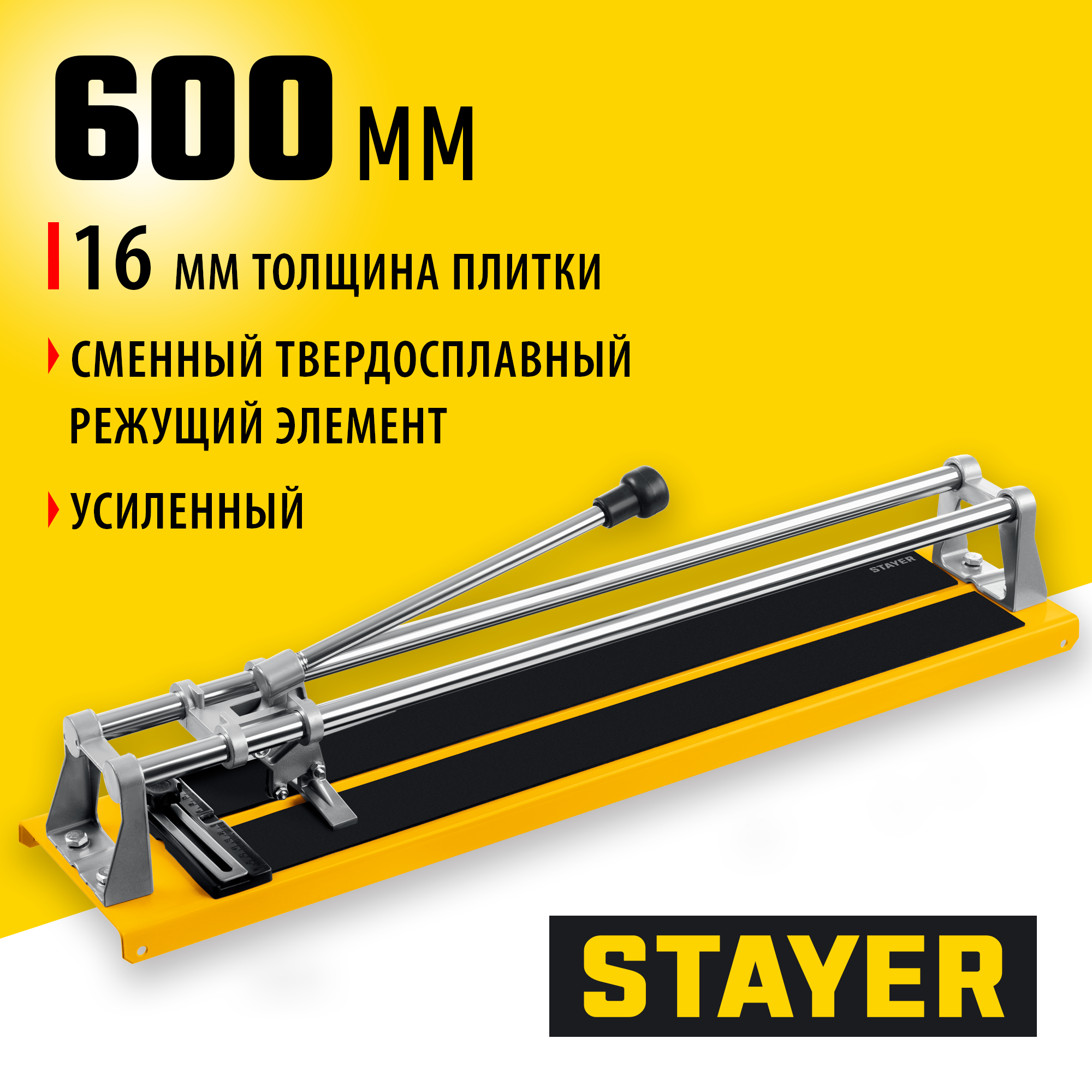 Плиткорез STAYER - правильный выбор! Оснащен сменным твердосплавным режущим элементом, . Металлические направляющие обеспечивают точный и плавный разрез керамической плитки. Усиленная платформа и опоры позволяют проводить работы с керамической плиткой повышенной толщины и увеличивают срок службы плиткореза.