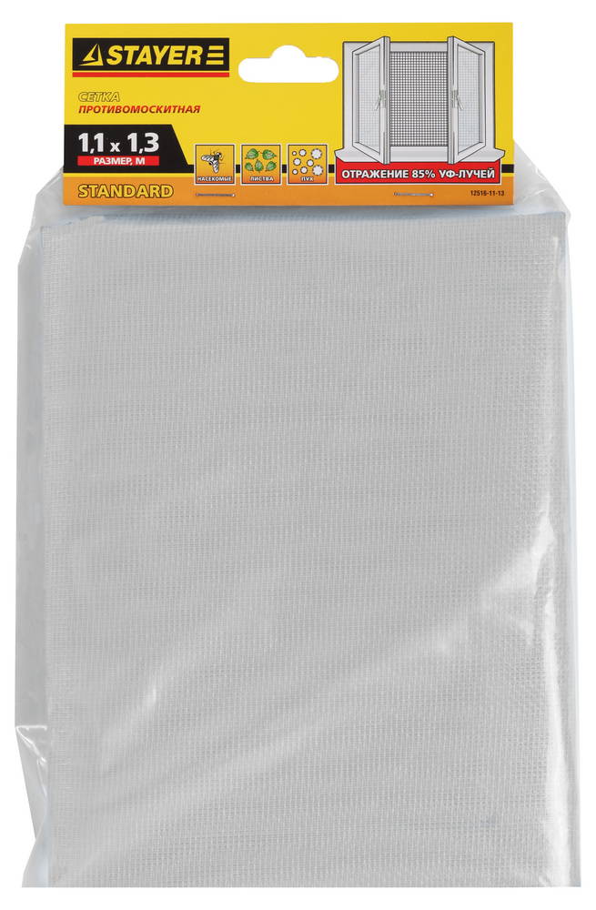 Противомоскитная сетка STAYER предназначена для защиты от летающих насекомых и пауков, служит преградой тополиному пуху, пыли и листве.