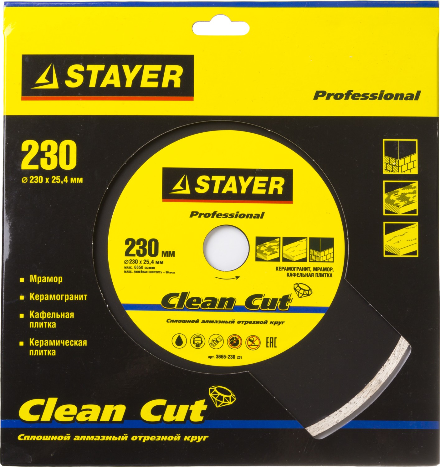 Неоспоримым преимуществом отрезных алмазных дисков STAYER серии PROFESSIONAL является их высокая производительность, увеличенный рабочий ресурс и универсальность применения при обработке различных строительных материалов. Применяются на электроплиткорезах для резки керамогранита, мрамора при обязательном водяном охлаждении.