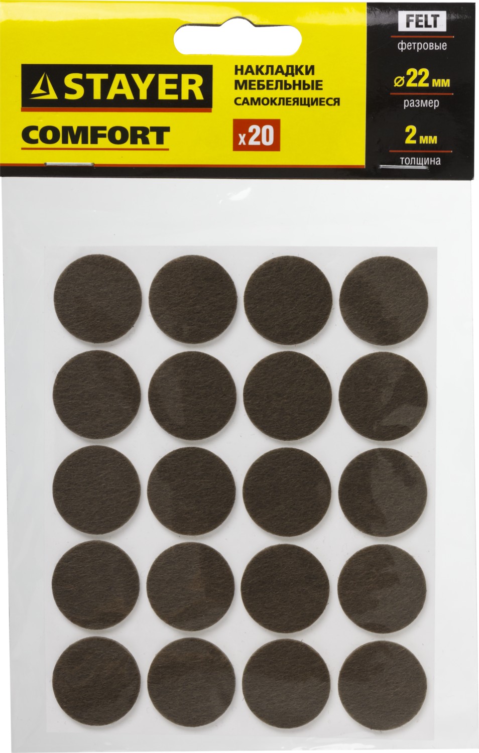 STAYER d 22 мм, самоклеящиеся, фетровые, 20 шт, коричневые, мебельные накладки (40910-22)