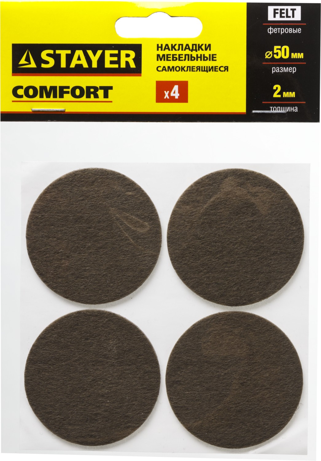 STAYER d 50 мм, самоклеящиеся, фетровые, 4 шт, коричневые, мебельные накладки (40910-50)