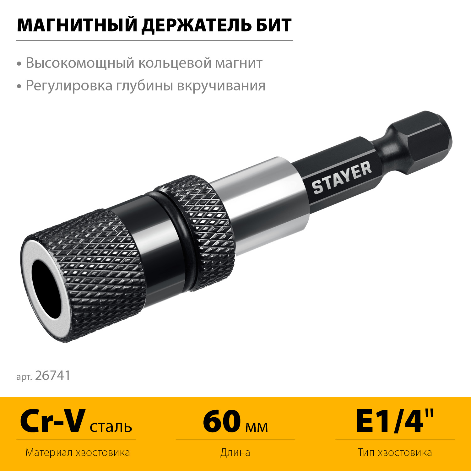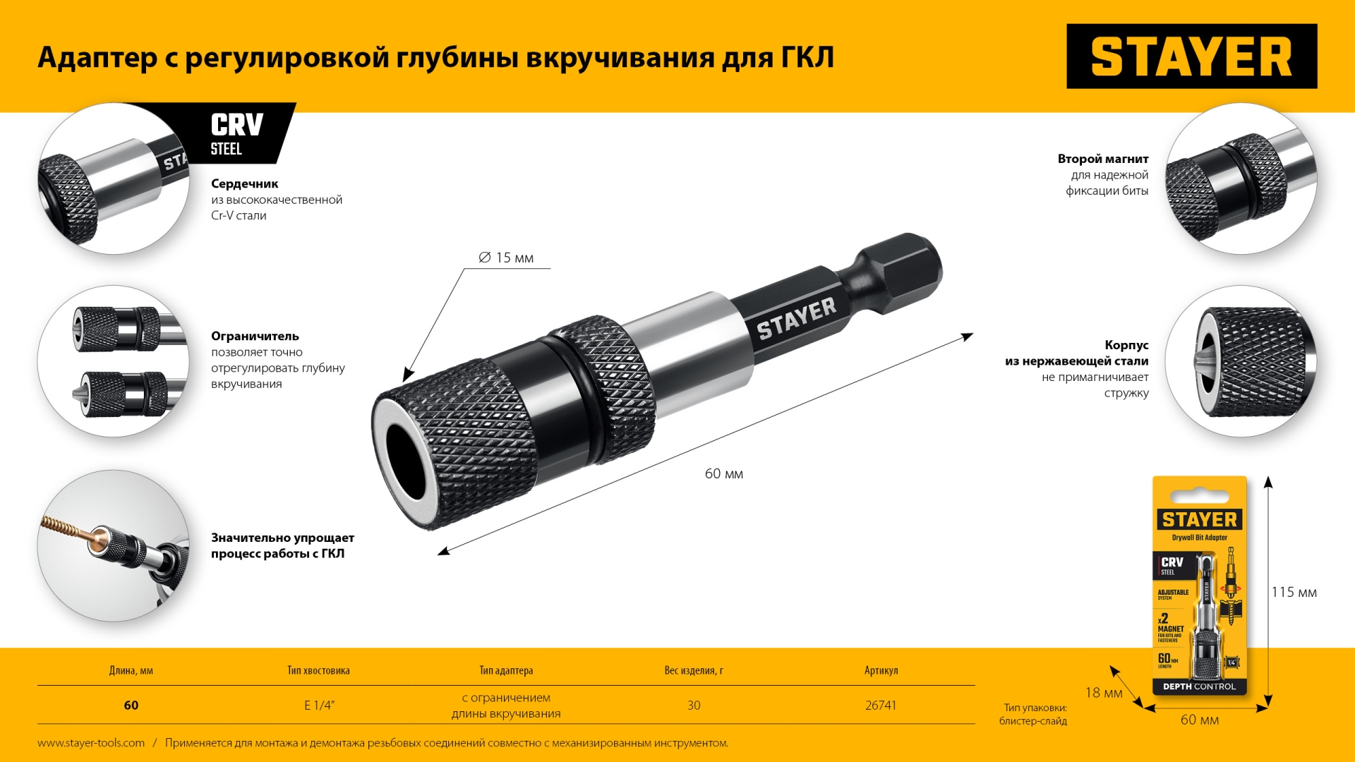 Магнитный адаптер с регулируемым ограничителем предотвращает повреждение поверхностей из гипсокартона и дерева при вкручивании