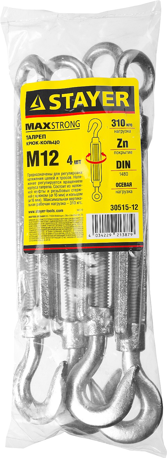 STAYER DIN 1480, М12, 4 шт, талреп крюк-кольцо (30515-12)