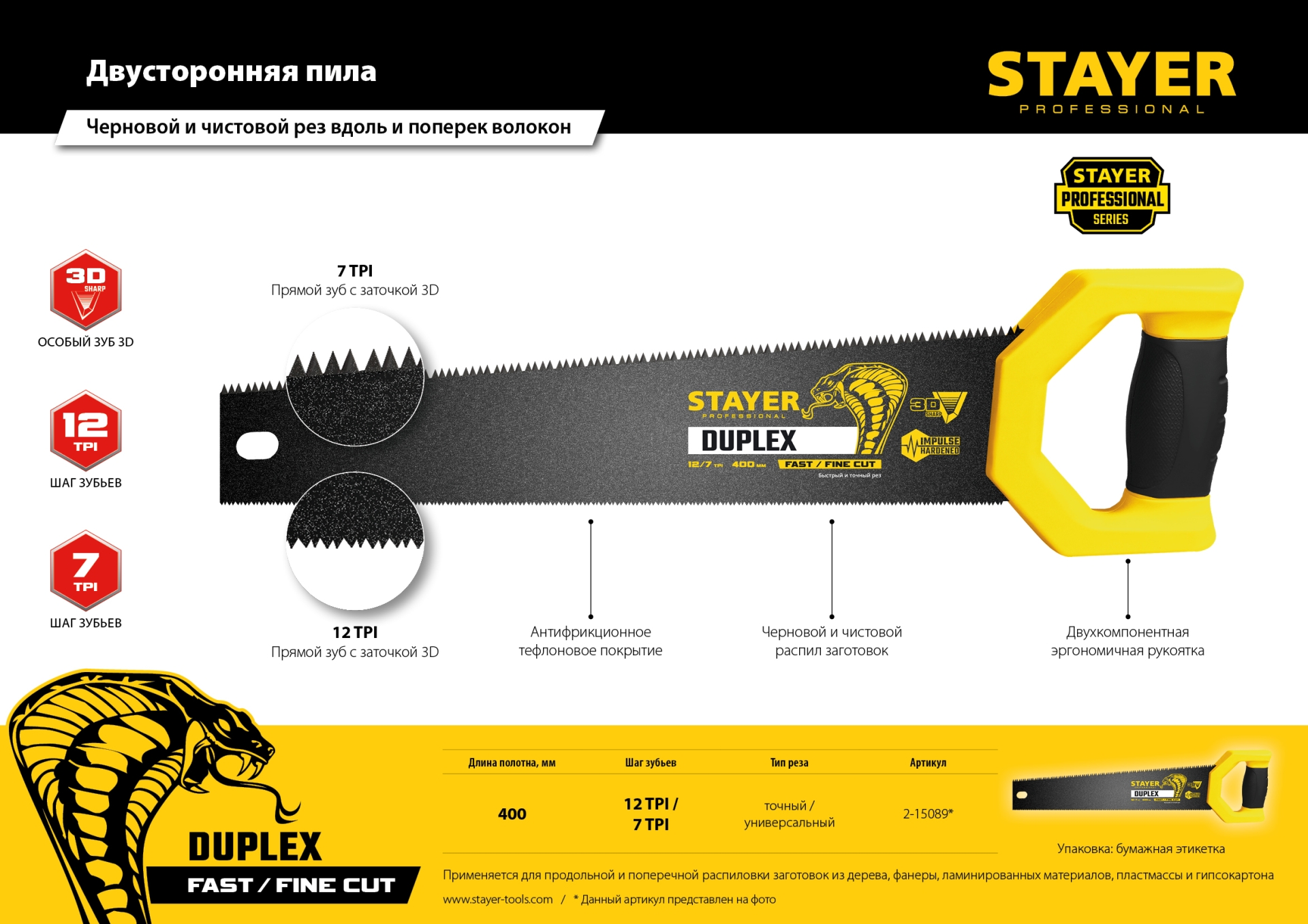 Ножовка двухсторонняя с антифрикционным тефлоновым покрытием для быстрого и точного пиления различного типа заготовок