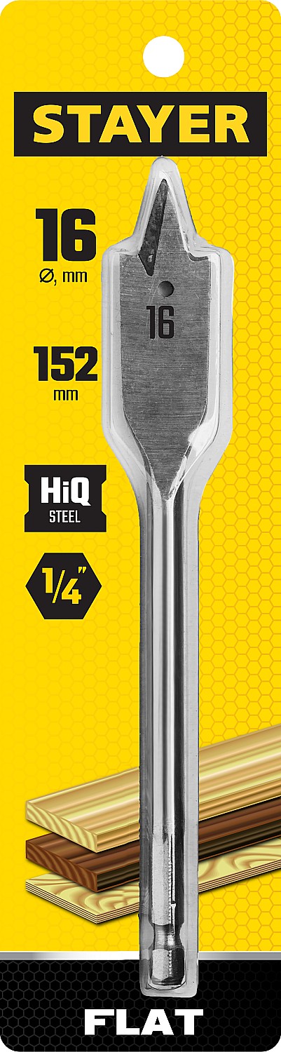 STAYER Flat, 16 x 152 мм, перовое, cверло по дереву (2950-16)