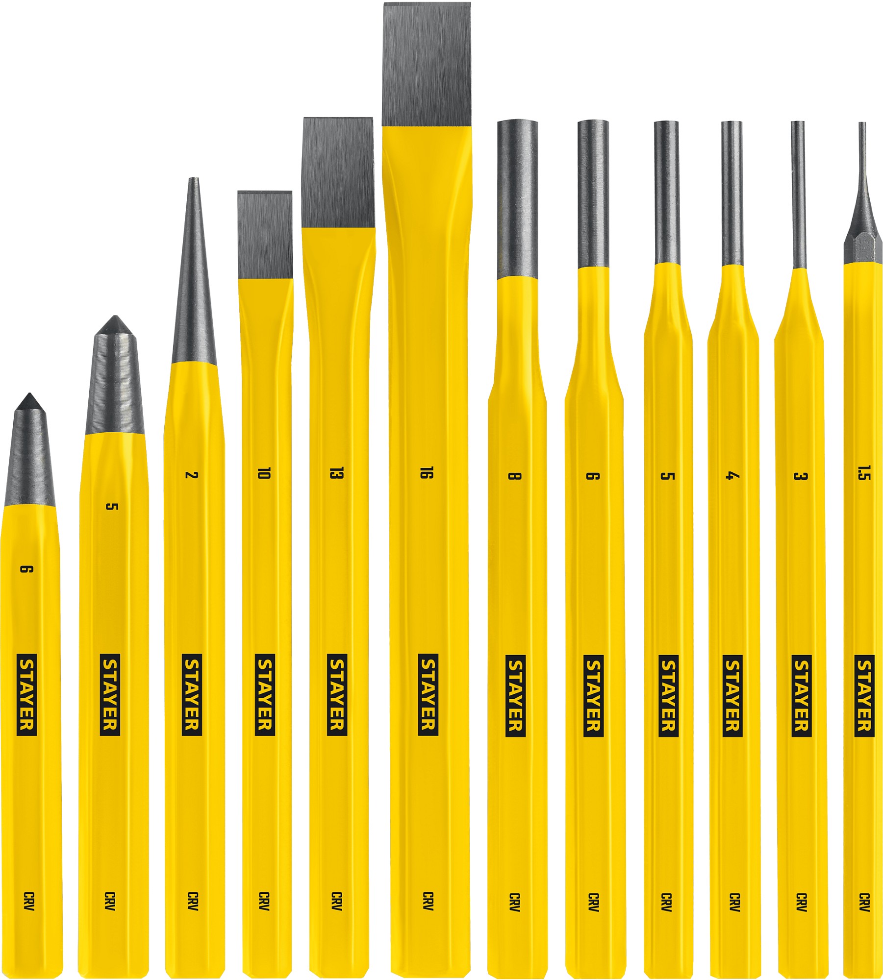 Набор высококачественных зубил и кернеров.