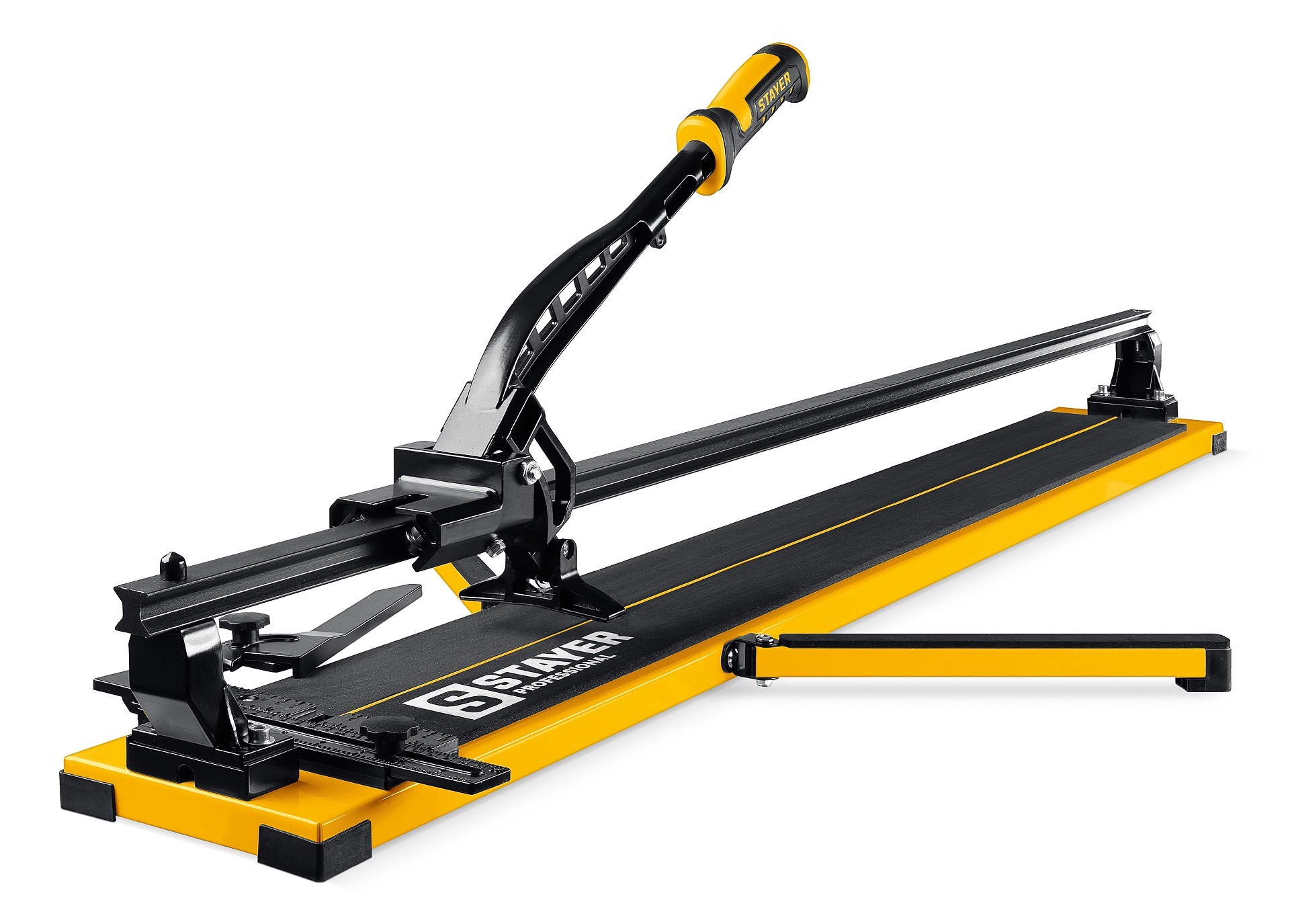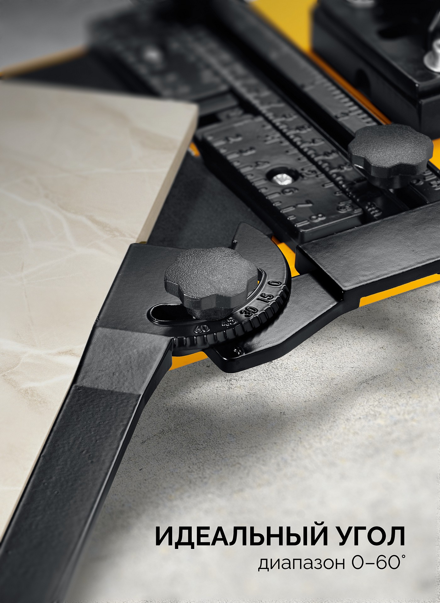Усиленный плиткорез на монорельсе STAYER имеет самый плавный рез благодаря каретке и режущему элементу на подшипниках. Боковые опоры позволя т резать шировкую плитку.