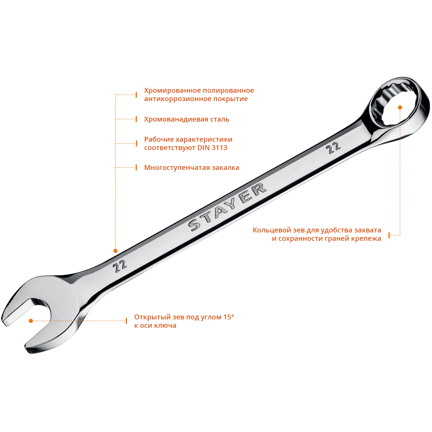 16 предметов: комбинированные 6, 7, 8, 9, 10, 11, 12, 13, 14, 15, 16, 17, 19, 21, 22 мм разводной ключ 30 мм / 250 мм