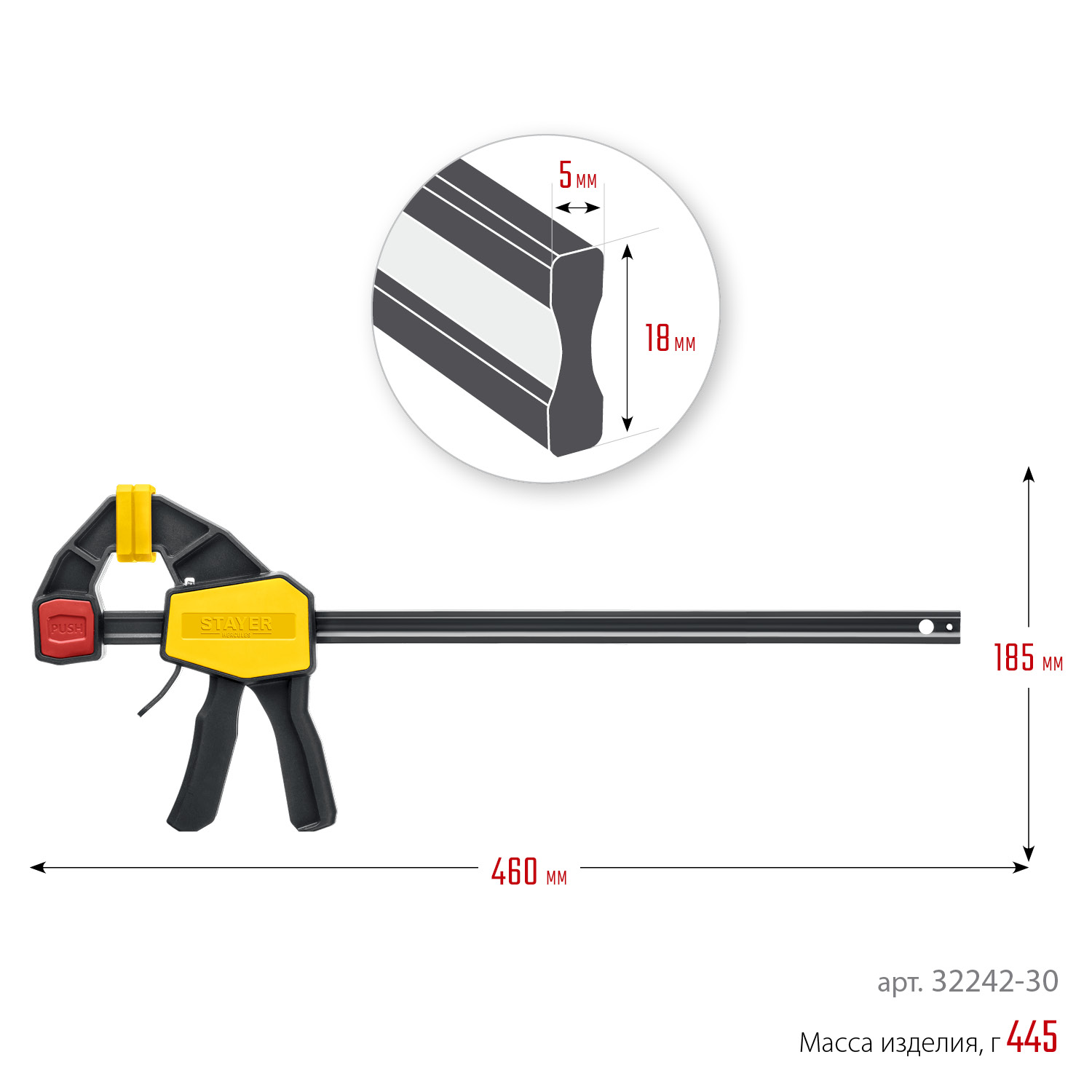 STAYER Hercules, 300/480 мм, пистолетная струбцина, Professional (32242-30)