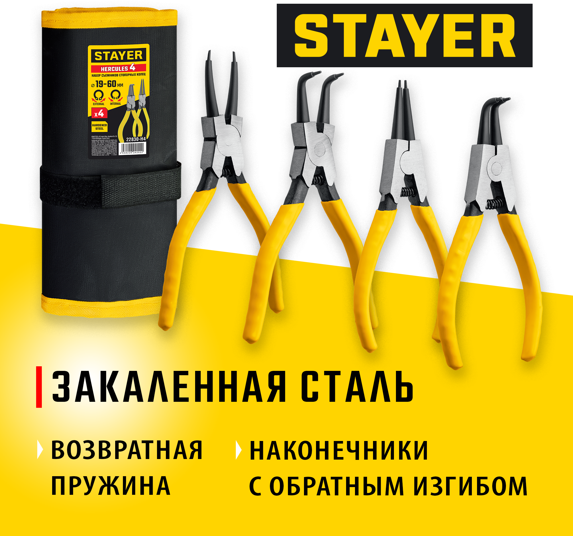 Набор съемников стопорных колец, изготовленых из хромованадиевой стали со специальным антикоррозиойным покрытием