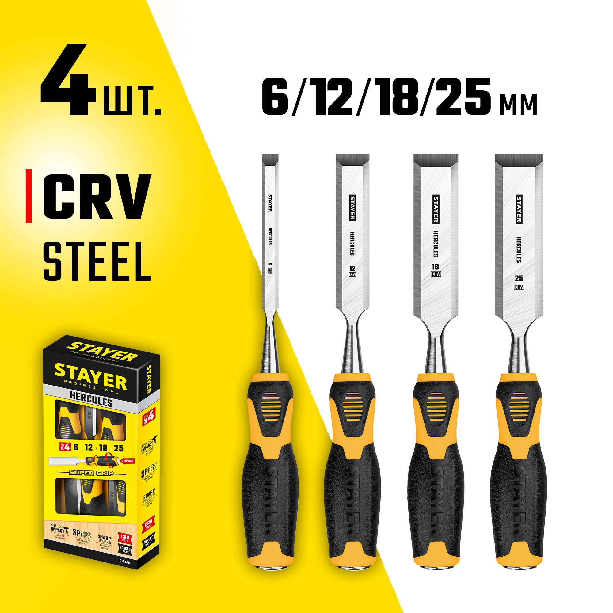STAYER Hercules, 4 предм, набор стамесок-долот, Professional (18205-H4)