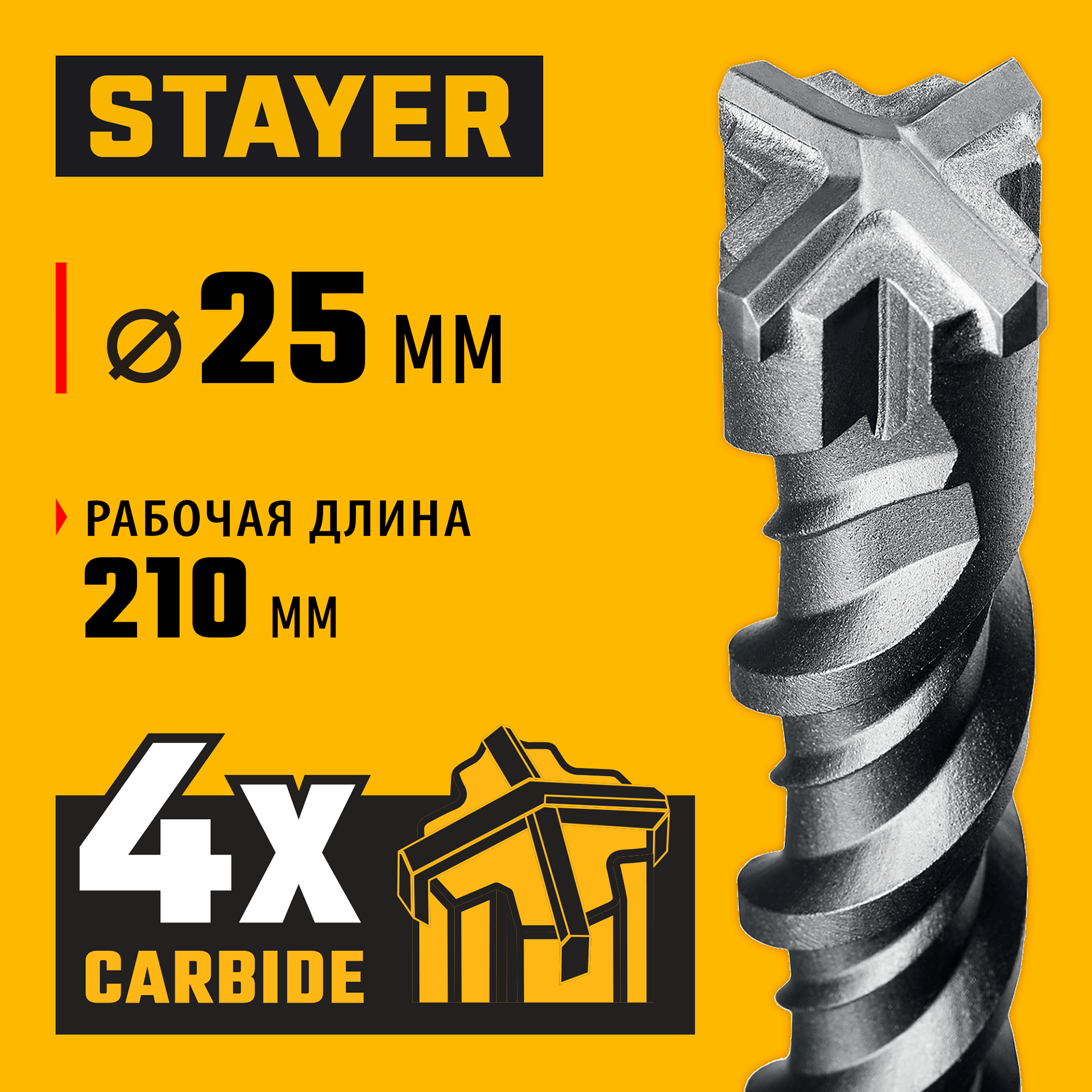Буры STAYER HERCULES-4Х - надежный инструмент, отвечающий самым высоким требованиям качества и для любой сложности работ. Применяются при сверлении отверстий в бетоне, граните, кирпичной кладке, камне и твердых известняках.