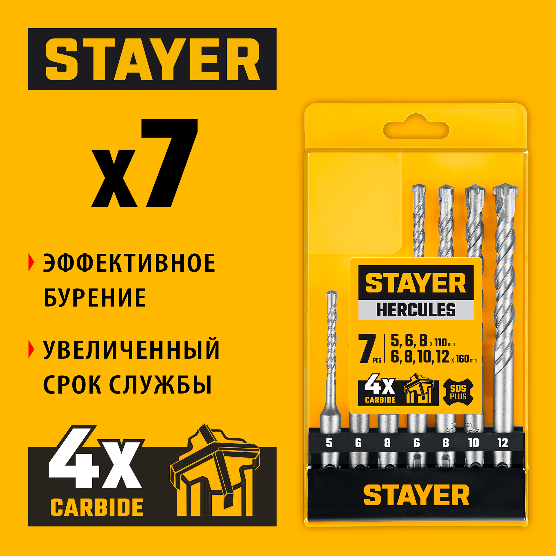 Буры STAYER HERCULES-4Х - надежный инструмент, отвечающий самым высоким требованиям качества и для любой сложности работ. Применяются при сверлении отверстий в бетоне, граните, кирпичной кладке, камне и твердых известняках.