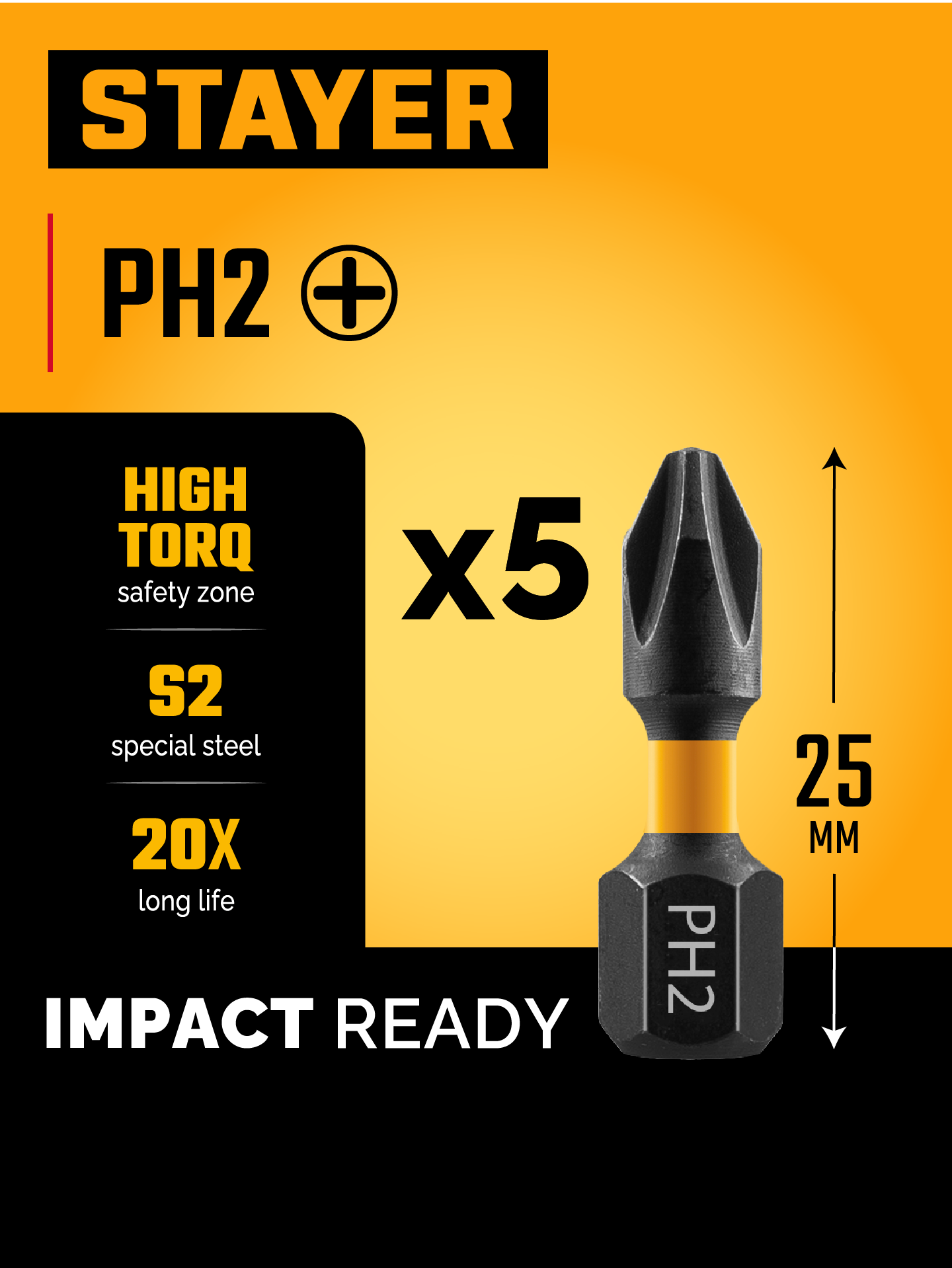STAYER HERCULES, PH2, 25 мм, 5 шт, торсионные биты (26231-2-25-5)