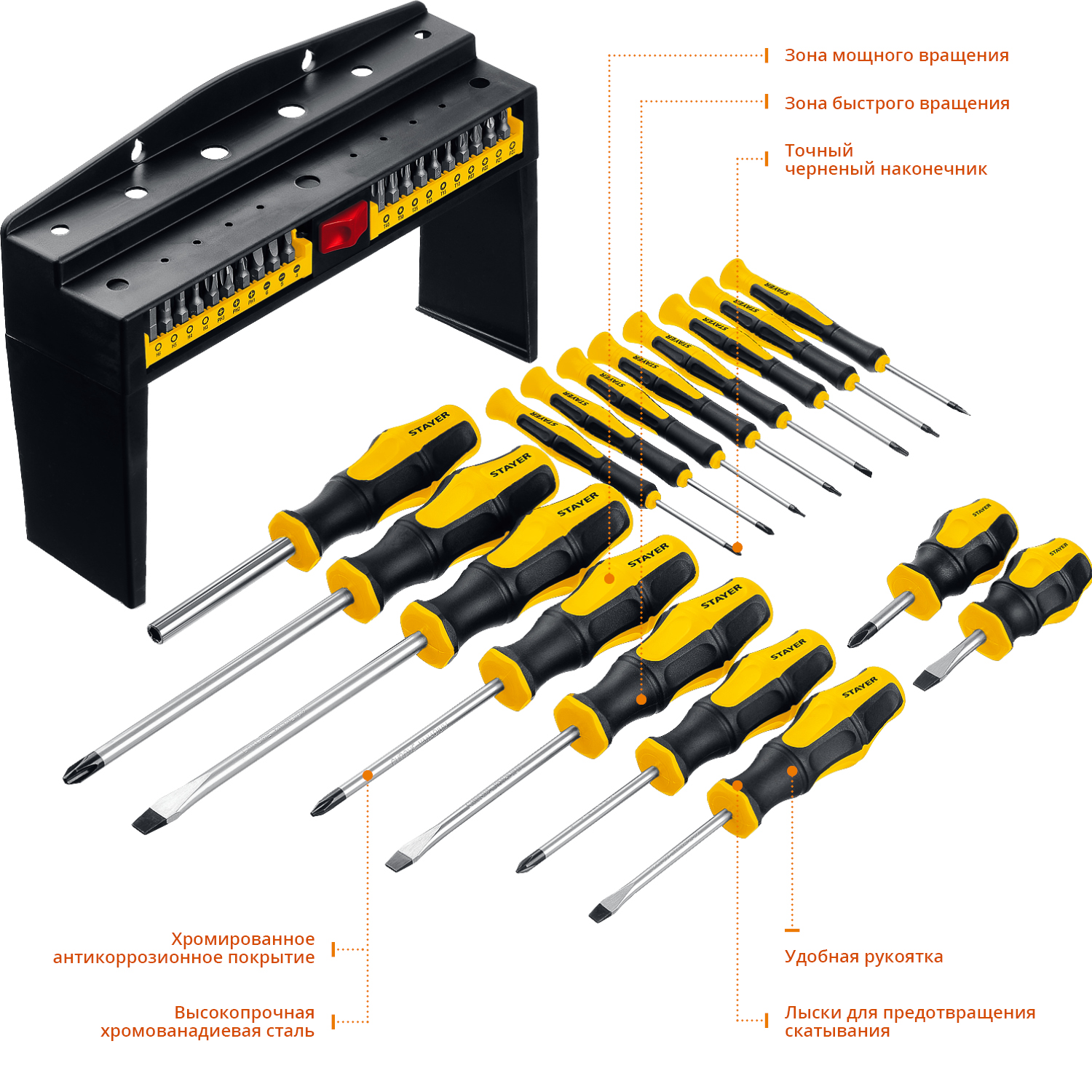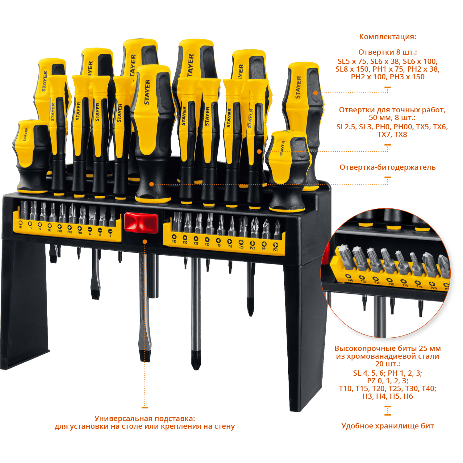 Многофункциональный набор слесарных отверток и отверток для точных работ в стойке. Биты и стержни отверток изготовлены из высококачественной Cr-V стали