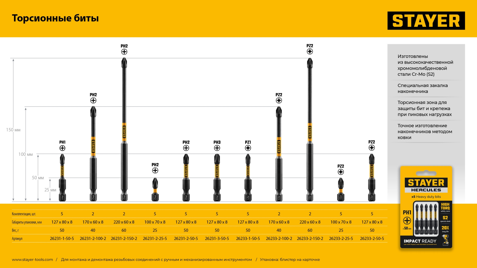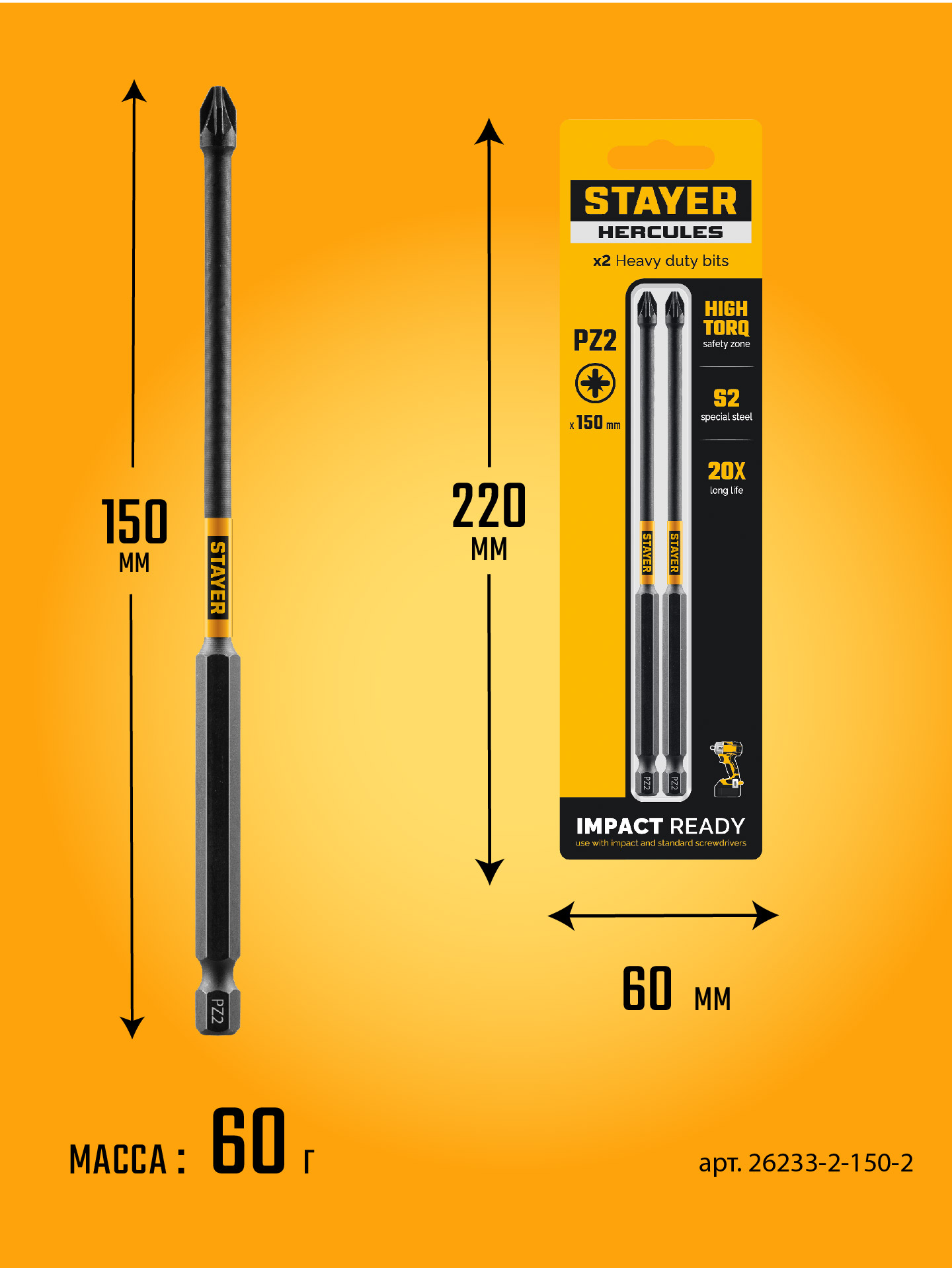 STAYER HERCULES, PZ2, 150 мм, 2 шт, торсионные биты (26233-2-150-2)