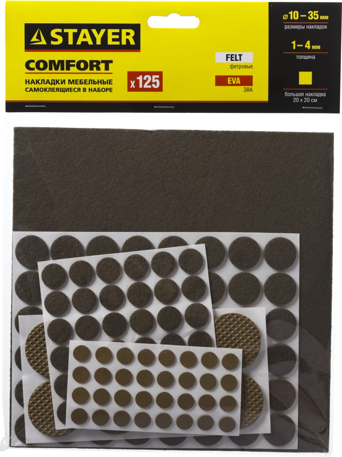 STAYER коричневые, самоклеящиеся, 125 шт, набор мебельных накладок (40916-H125)
