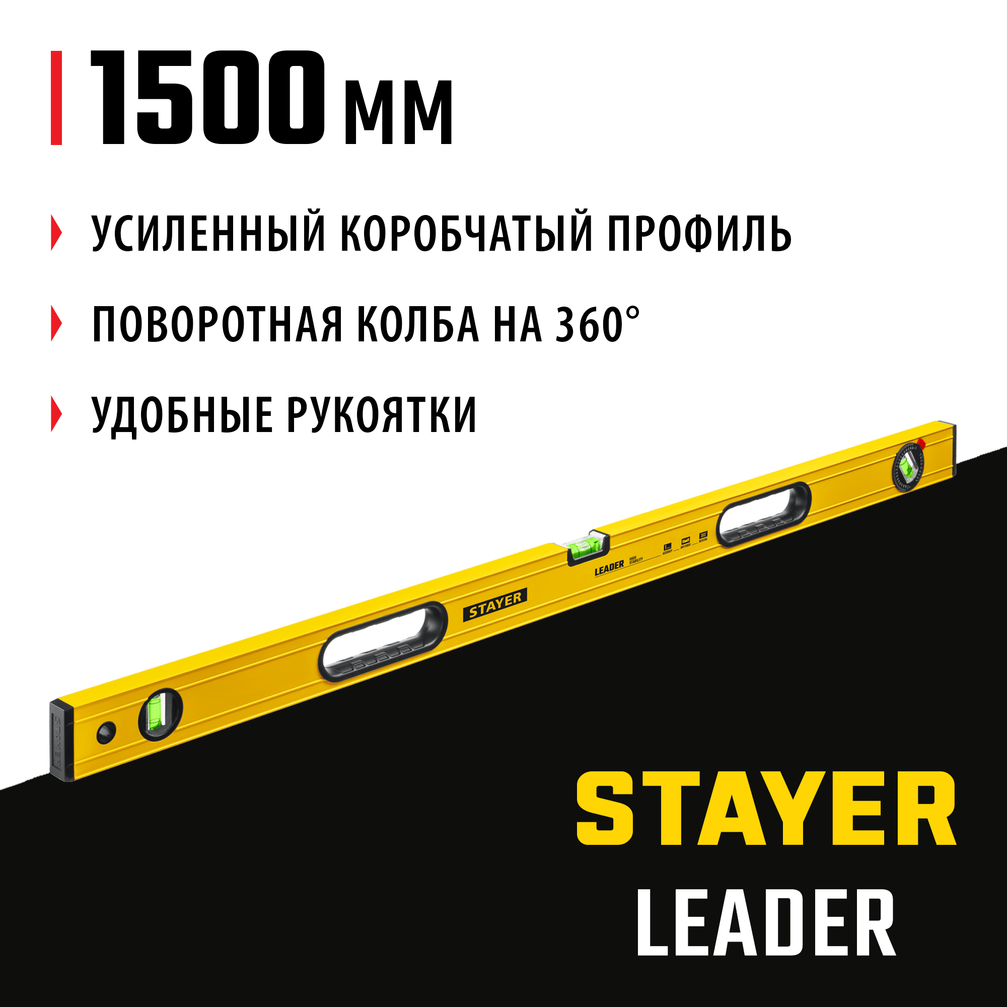 STAYER LEADER, 1500 мм, усиленный профиль, уровень с поворотным глазком (3466-150)