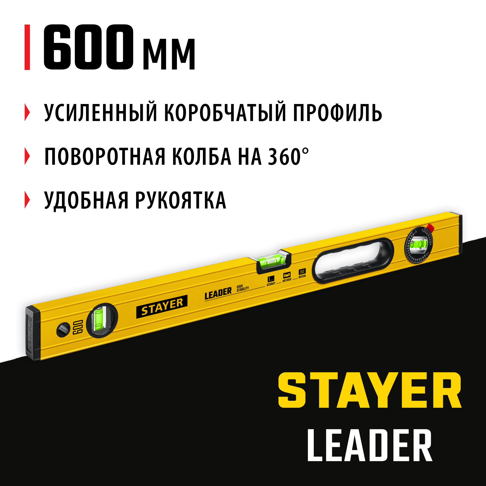 STAYER LEADER, 600 мм, усиленный профиль, уровень с поворотным глазком (3466-060)