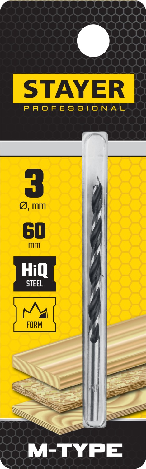 STAYER M-type, 3.0 x 60/30 мм, М-образная заточка, спиральное сверло по дереву (2942-060-03)