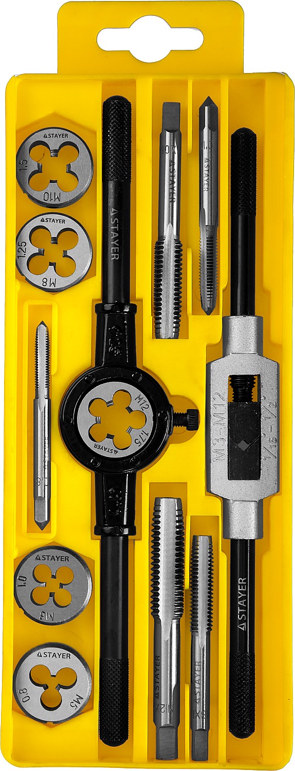 Набор метчиков и плашек STAYER отлично подходит для получения качественной и чистой внешней и внутренней резьбы