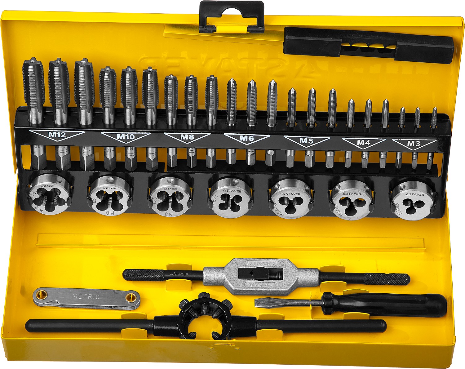 Набор метчиков и плашек STAYER отлично подходит для получения качественной и чистой внешней и внутренней резьбы