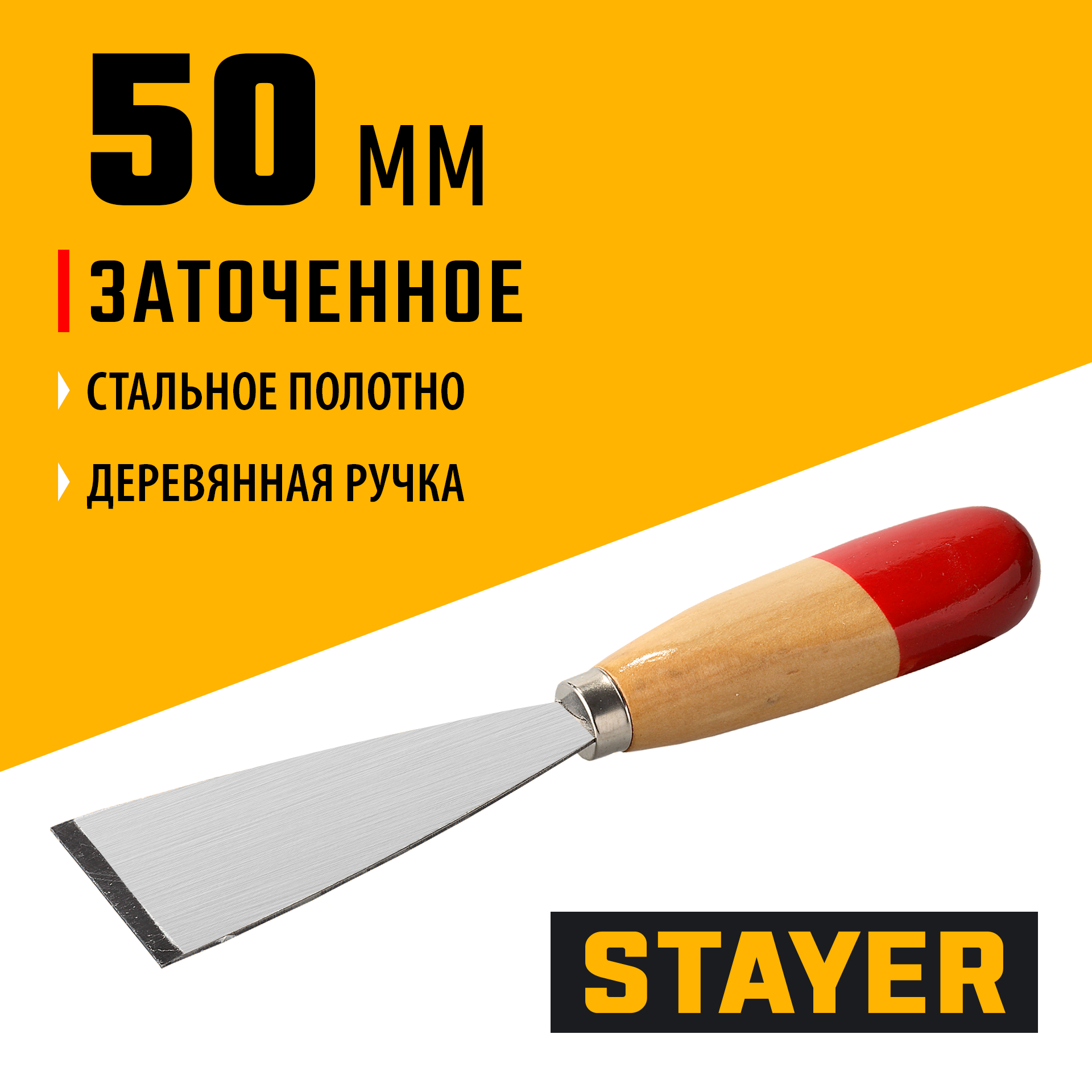 STAYER MAXFlat, 50 мм, усиленное стальное полотно, деревянная ручка, шпатель для удаления ржавчины (1002-50)