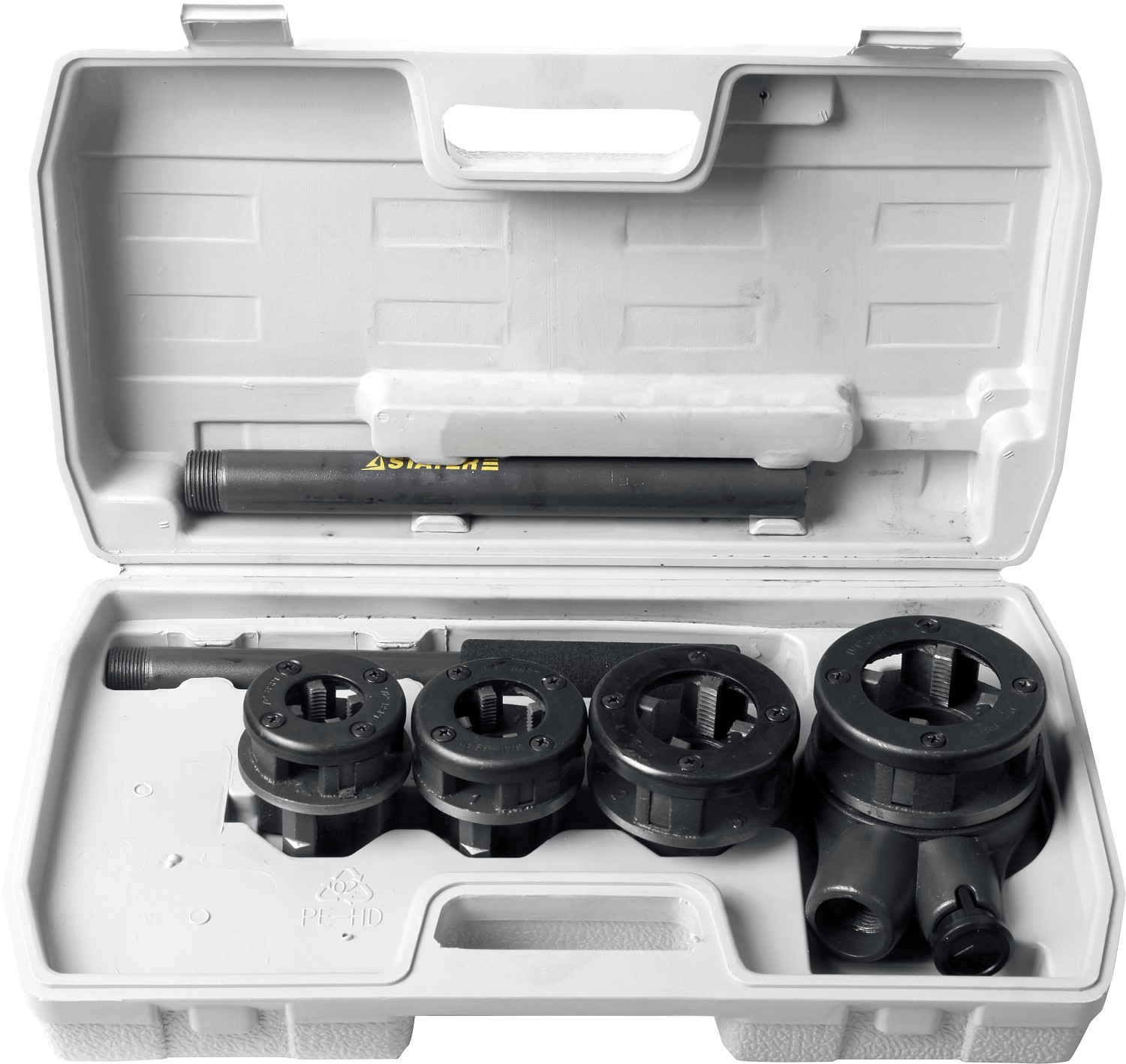 Для нарезания правой трубной конической резьбы (стандарт BSPT) на металлических трубах стандартного диаметра