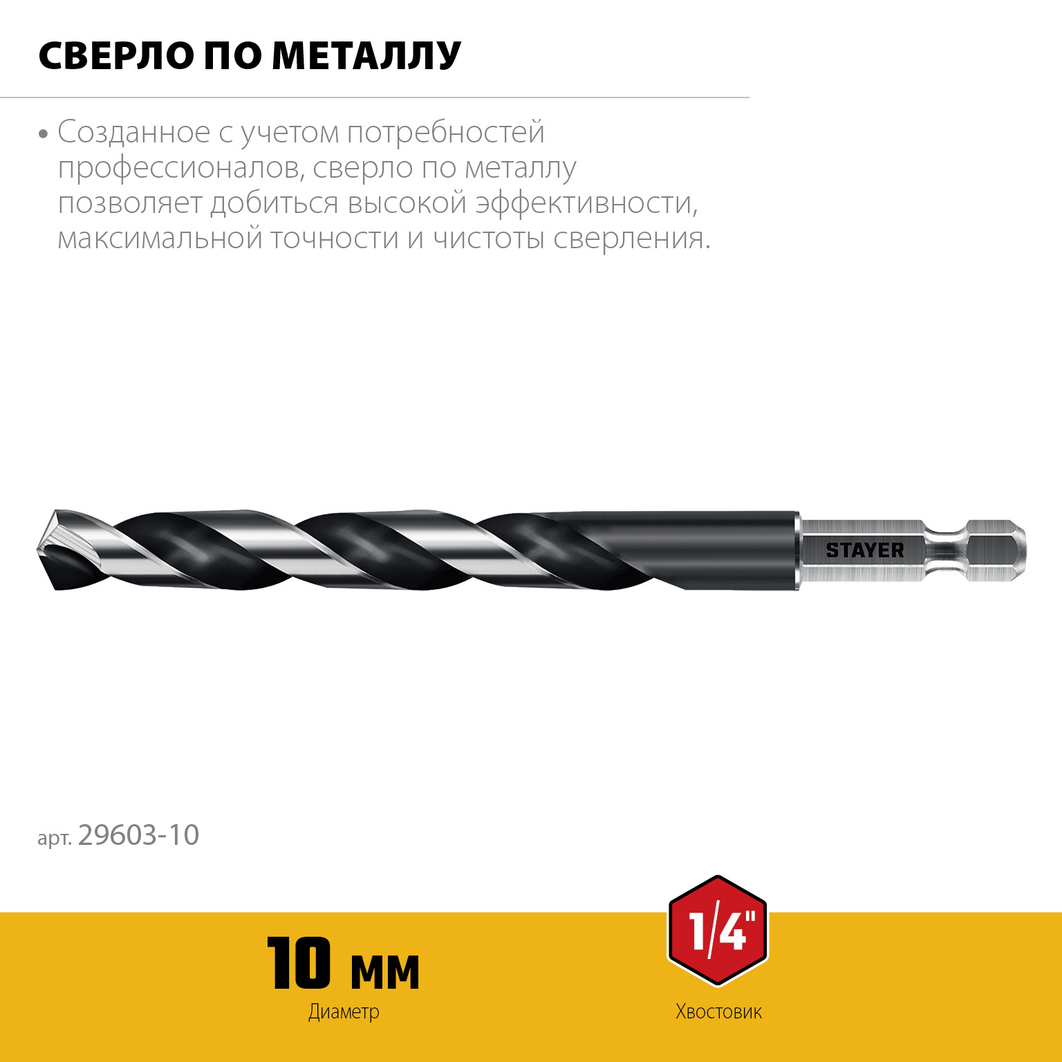 STAYER НЕХ-1/4″, d 10.0 х 133 мм, сверло по металлу для винтовёртов и шуруповертов IMPACT READY (29603-10)