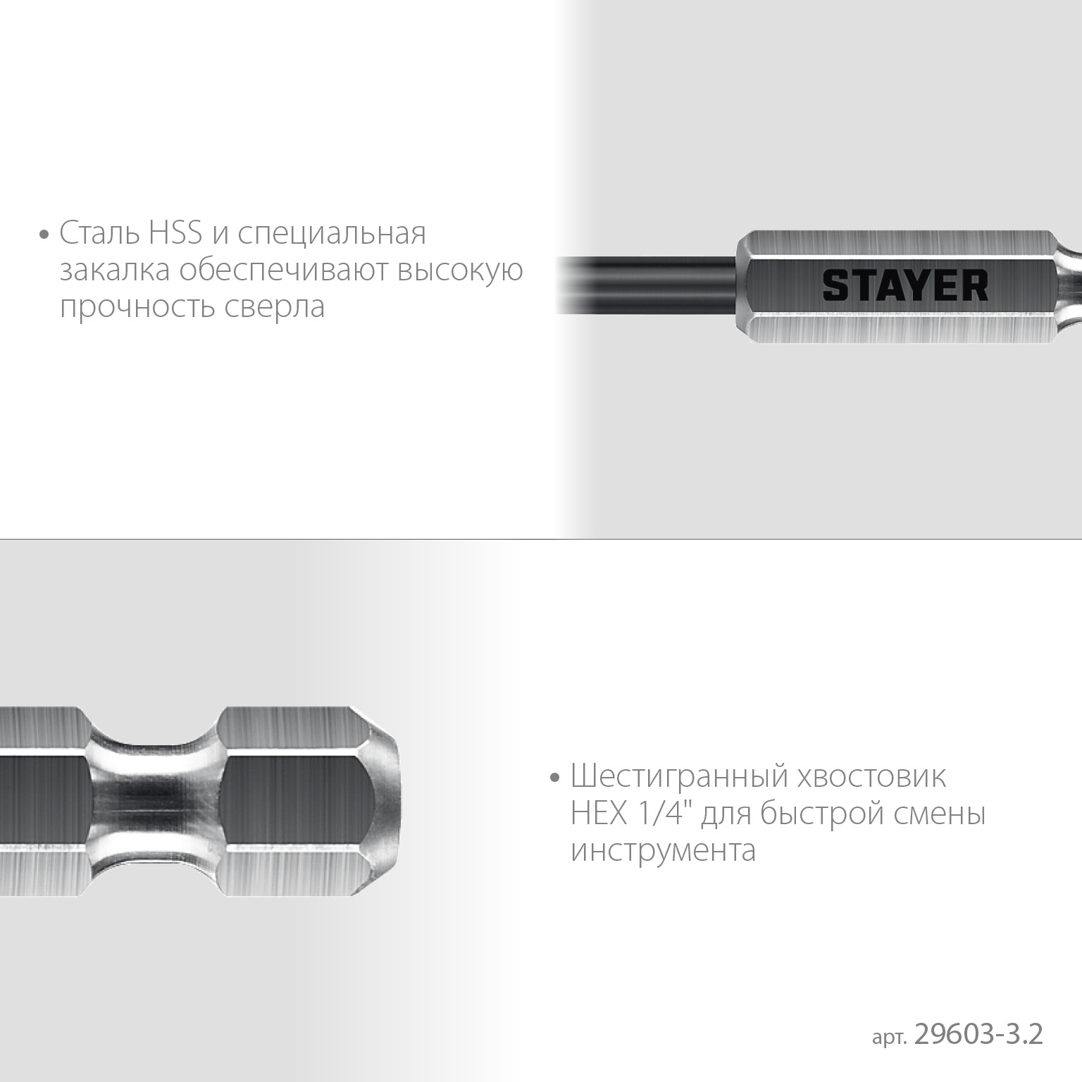STAYER НЕХ-1/4″, d 3.2 х 89 мм, сверло по металлу для винтовёртов и шуруповертов IMPACT READY (29603-3.2)