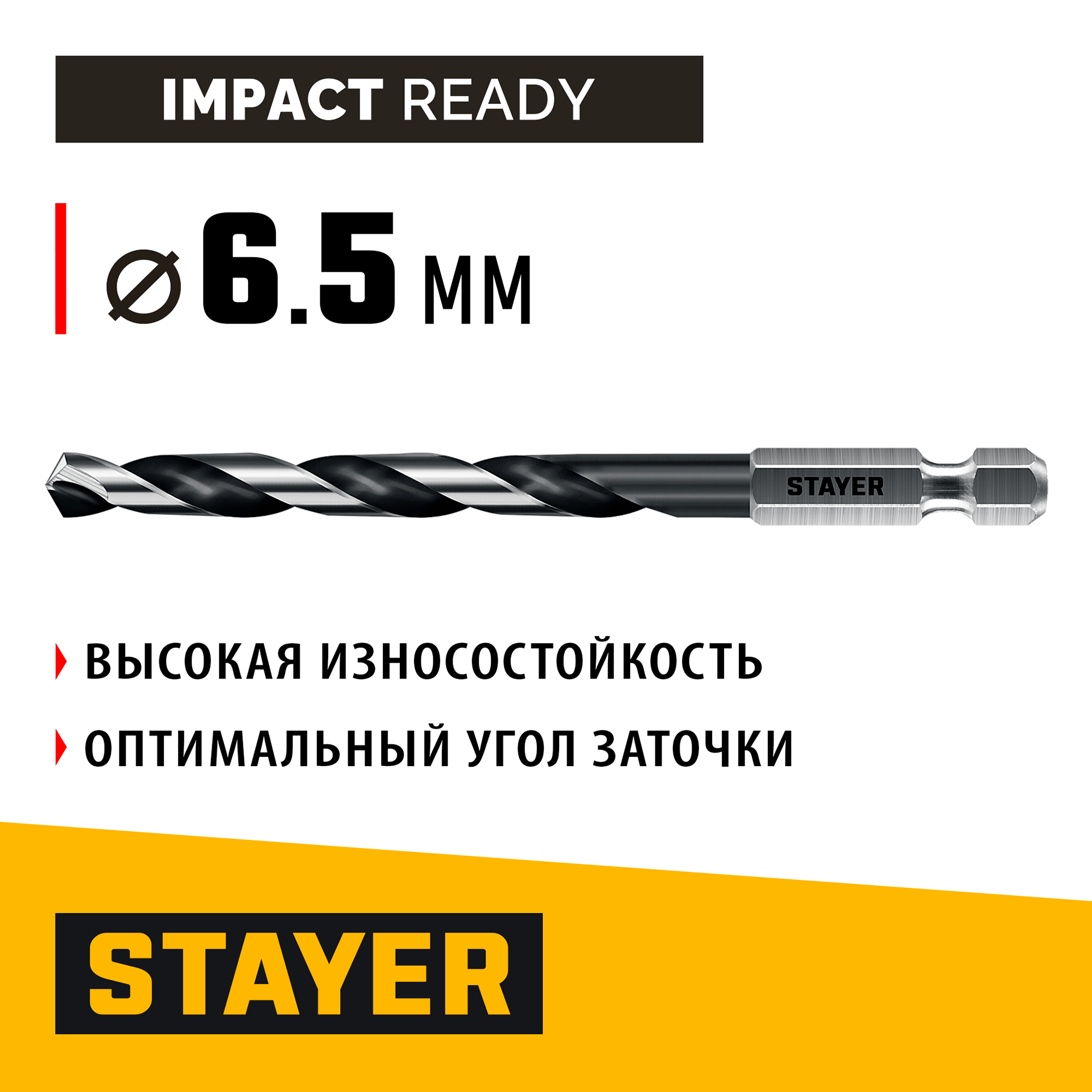 STAYER НЕХ-1/4″, d 6.5 х 124 мм, сверло по металлу для винтовёртов и шуруповертов IMPACT READY (29603-6.5)