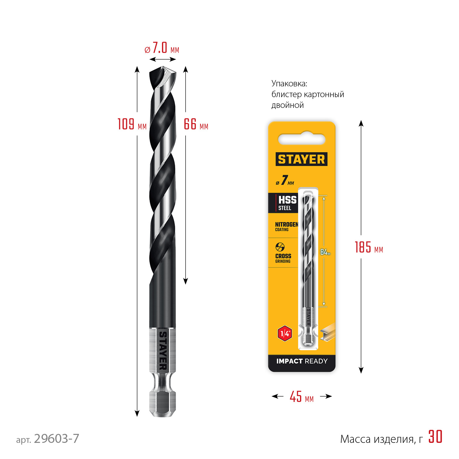 STAYER НЕХ-1/4″, d 7.0 х 109 мм, сверло по металлу для винтовёртов и шуруповертов IMPACT READY (29603-7)
