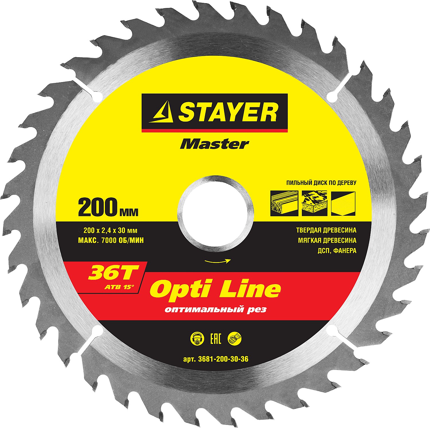 STAYER Opti Line 200 x 30мм 36Т, диск пильный по дереву, оптимальный рез