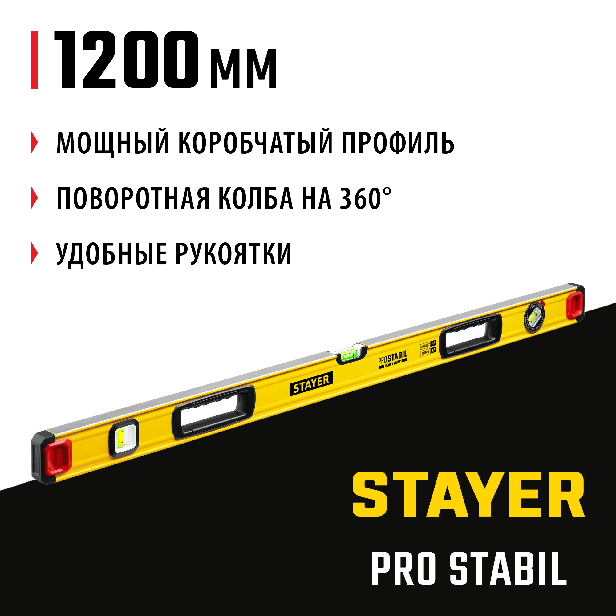 STAYER PRO STABIL, 1200 мм, усиленный профиль, уровень с поворотным глазком, Professional (3471-120)