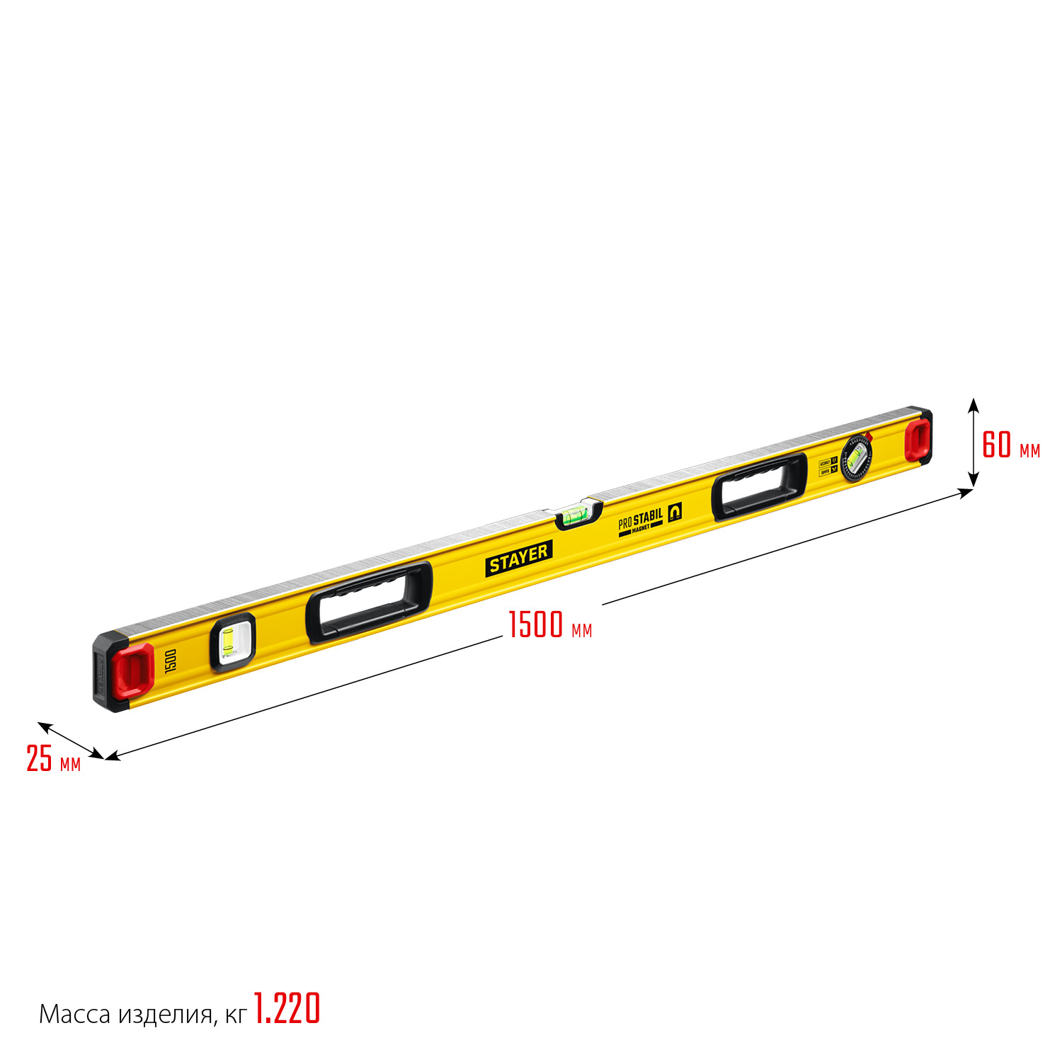 STAYER PRO STABIL, 1500 мм, усиленный профиль, магнитный уровень с поворотным глазком, Professional (3480-150)