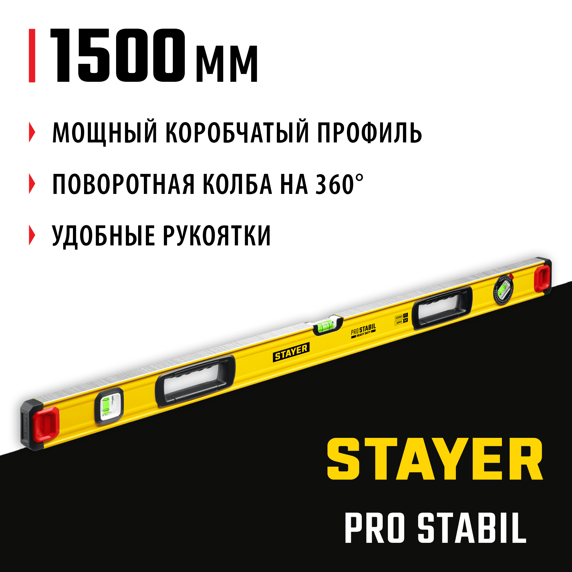 STAYER PRO STABIL, 1500 мм, усиленный профиль, уровень с поворотным глазком, Professional (3471-150)