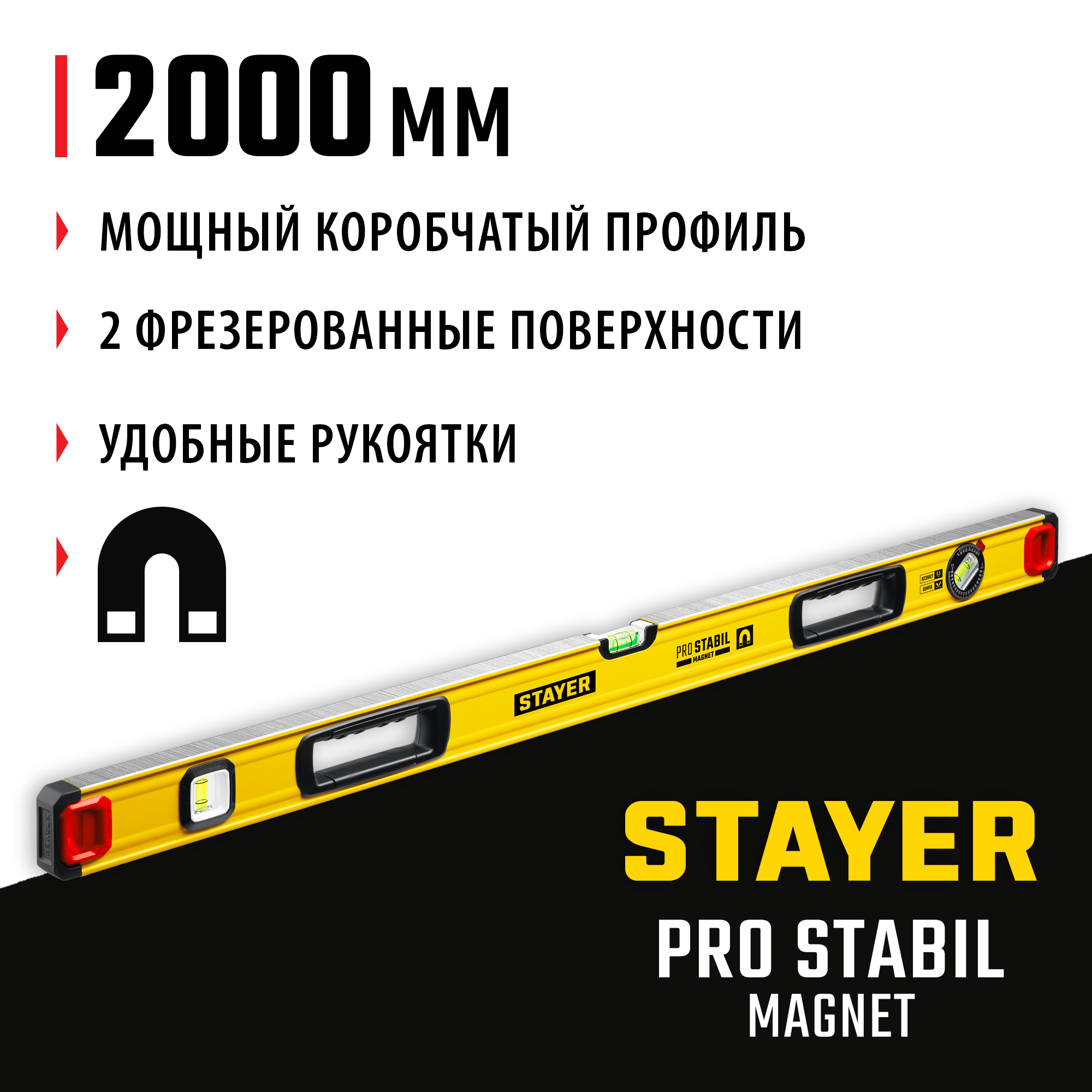 Магнитный уровень с двумя фрезерованными поверхностями и увеличенной точностью 0.5 мм/м