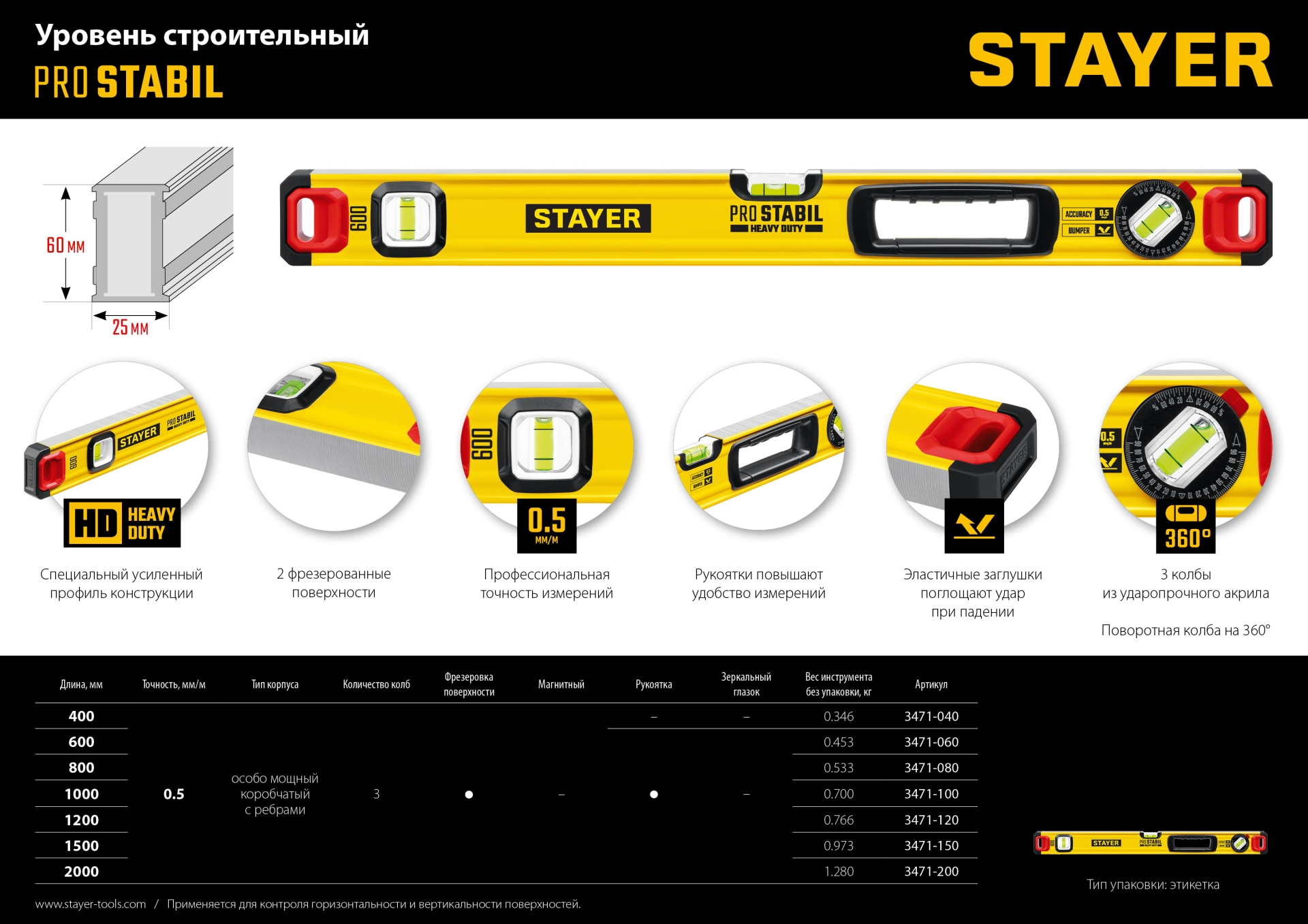 Строительный уровень с двумя фрезерованными поверхностями и увеличенной точностью 0.5 мм/м