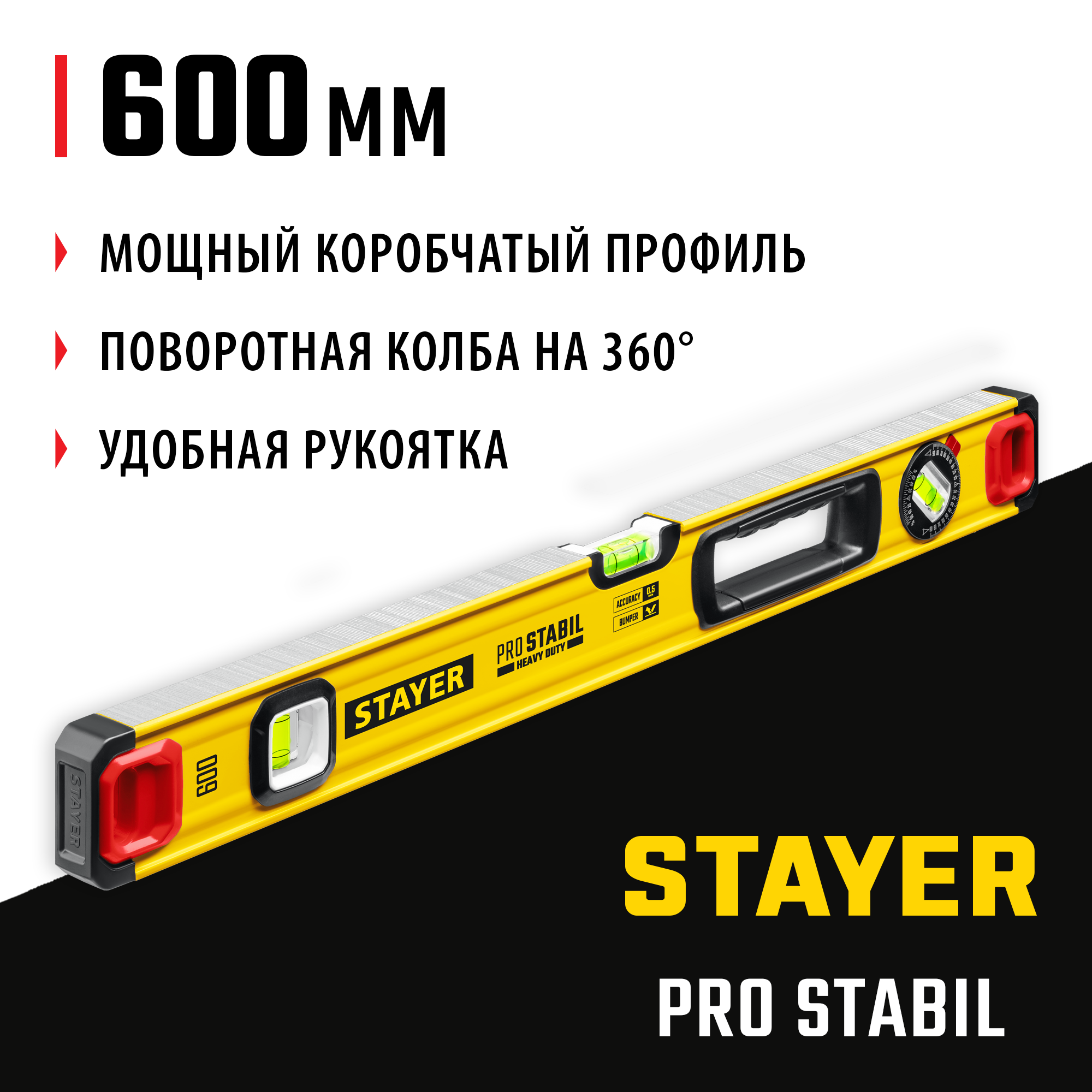 Строительный уровень с двумя фрезерованными поверхностями и увеличенной точностью 0.5 мм/м