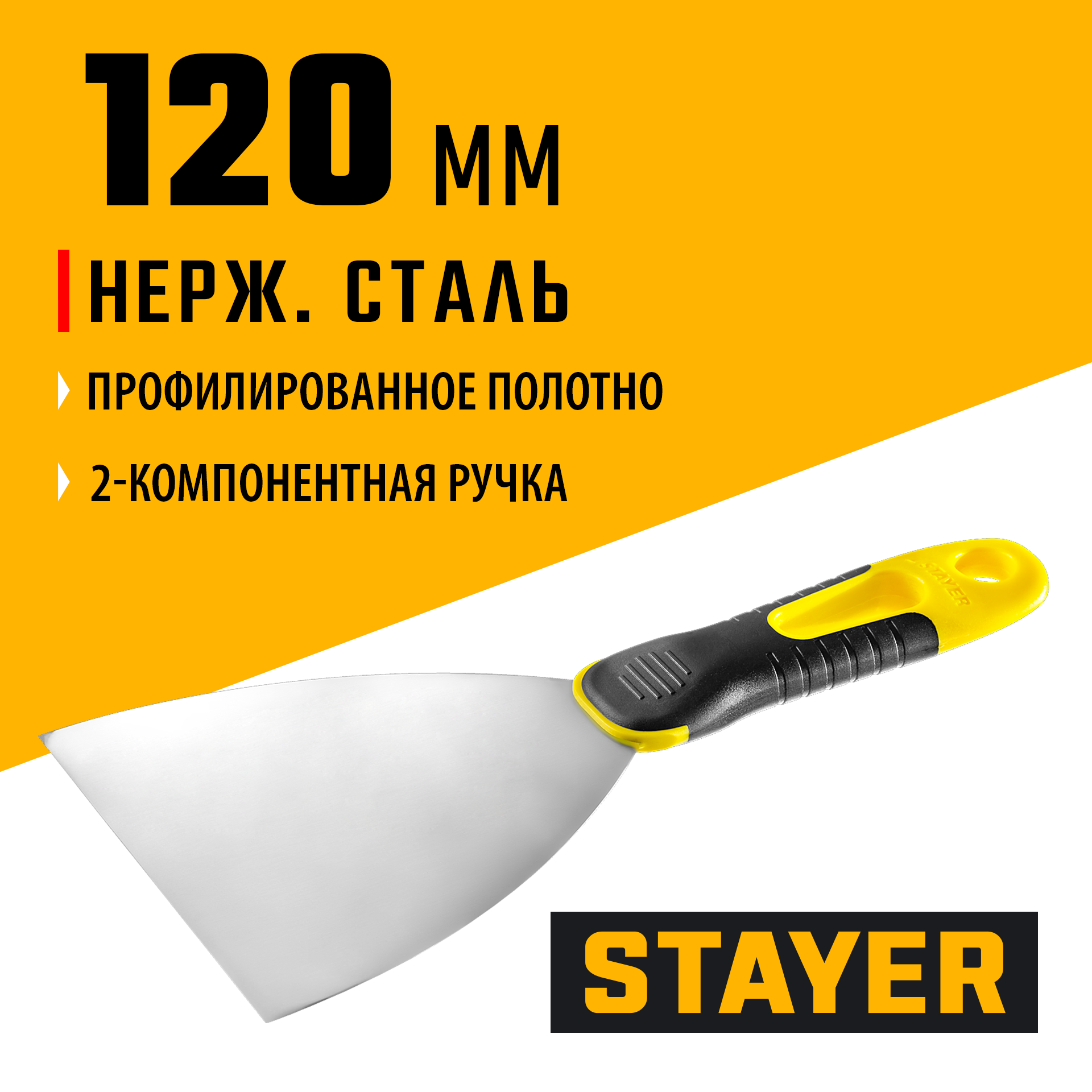Незаменимый инструмент при работе с различными строительными смесями, профилированное полотно из нержавеющей стали обеспечивает надежность и долгий срок службы, а эргономичная двухкомпонентная рукоятка создает условия для комфортной работы. Для ремонта есть решение - STAYER