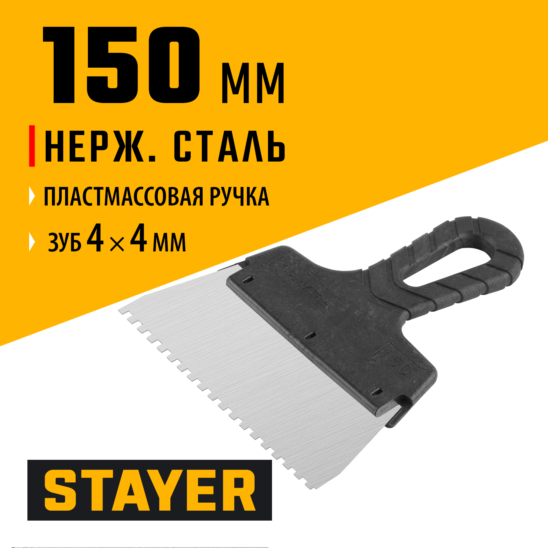 Благодаря зубчатой кромке шпатель идеально подходит для работы со строительными и клеевыми смесями, полотно из нержавеющей стали обеспечивает надежность и долгий срок службы, а удобная пластмассовая рукоятка создает условия для комфортной работы