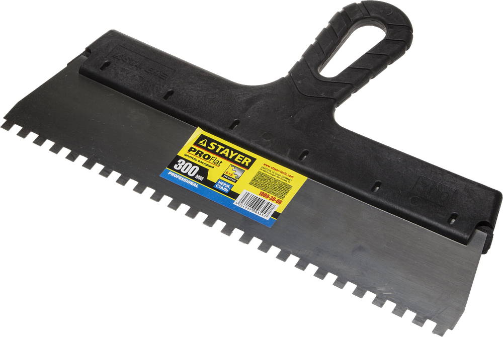 Благодаря зубчатой кромке шпатель идеально подходит для работы со строительными и клеевыми смесями, полотно из нержавеющей стали обеспечивает надежность и долгий срок службы, а удобная пластмассовая рукоятка создает условия для комфортной работы