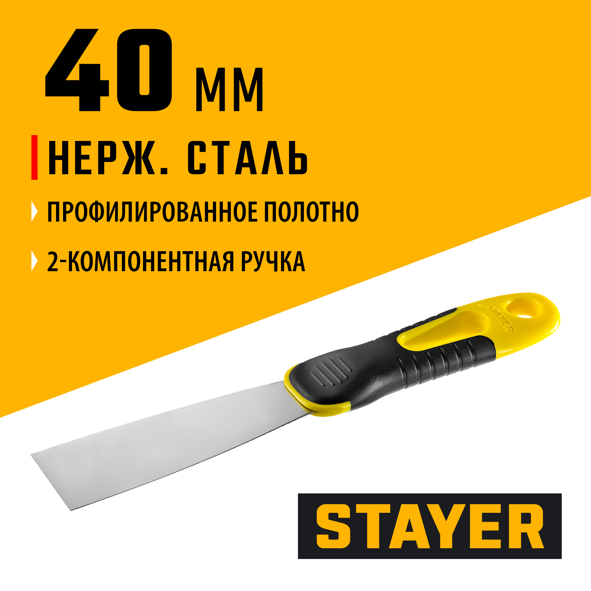 Незаменимый инструмент при работе с различными строительными смесями, профилированное полотно из нержавеющей стали обеспечивает надежность и долгий срок службы, а эргономичная двухкомпонентная рукоятка создает условия для комфортной работы. Для ремонта есть решение - STAYER