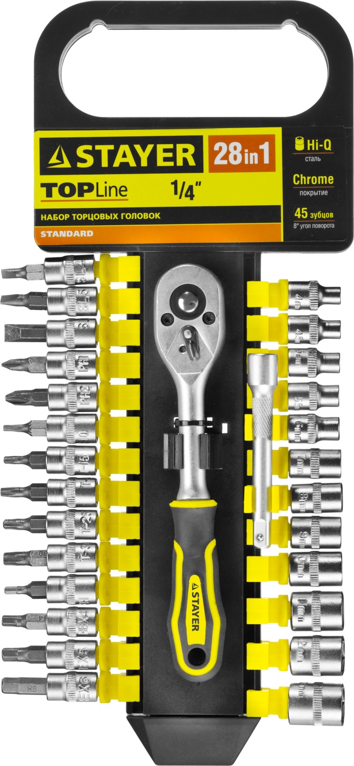 STAYER RSS 28S, 28 предм., (1/4″), набор торцовых головок и бит-головок (27754-H28)