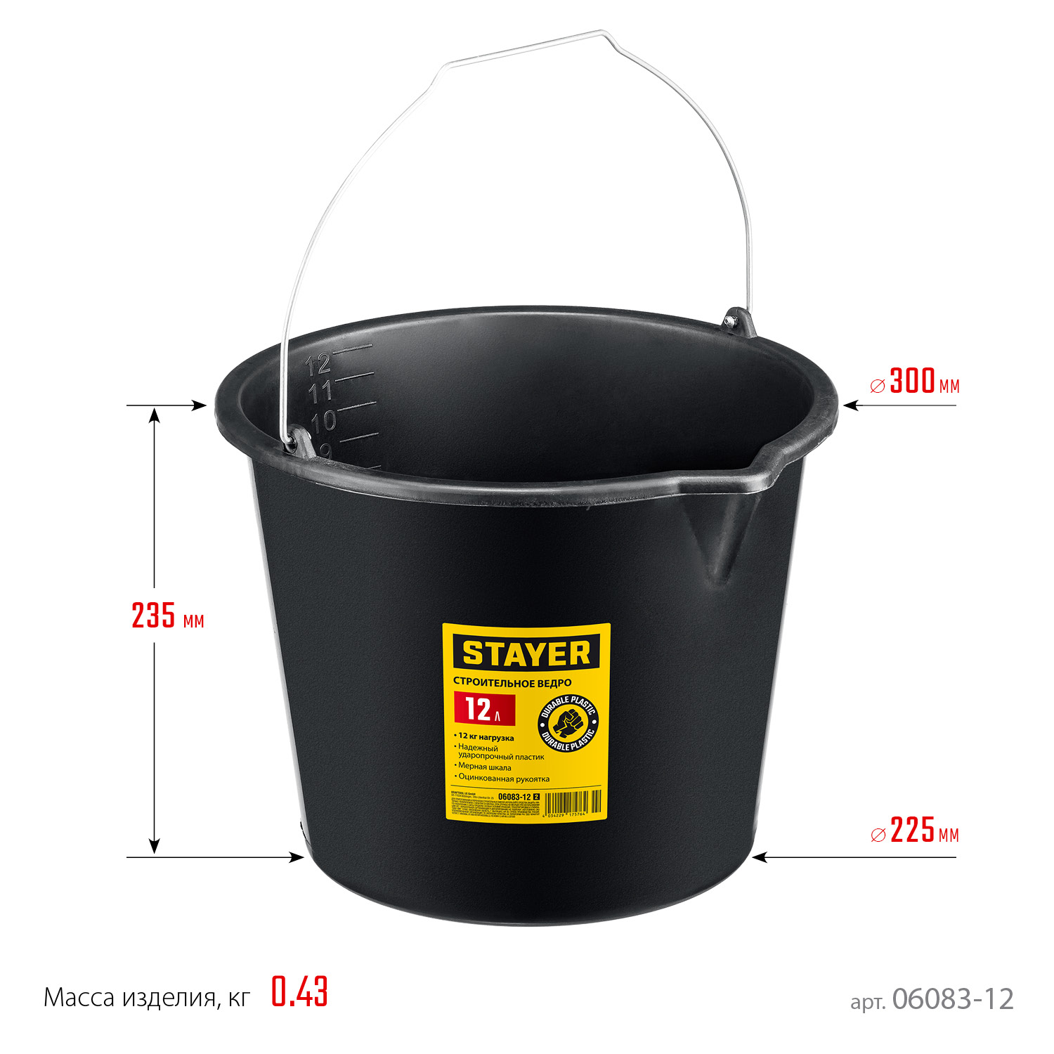 STAYER STRONG, 12 л, строительное пластиковое ведро (06083-12)