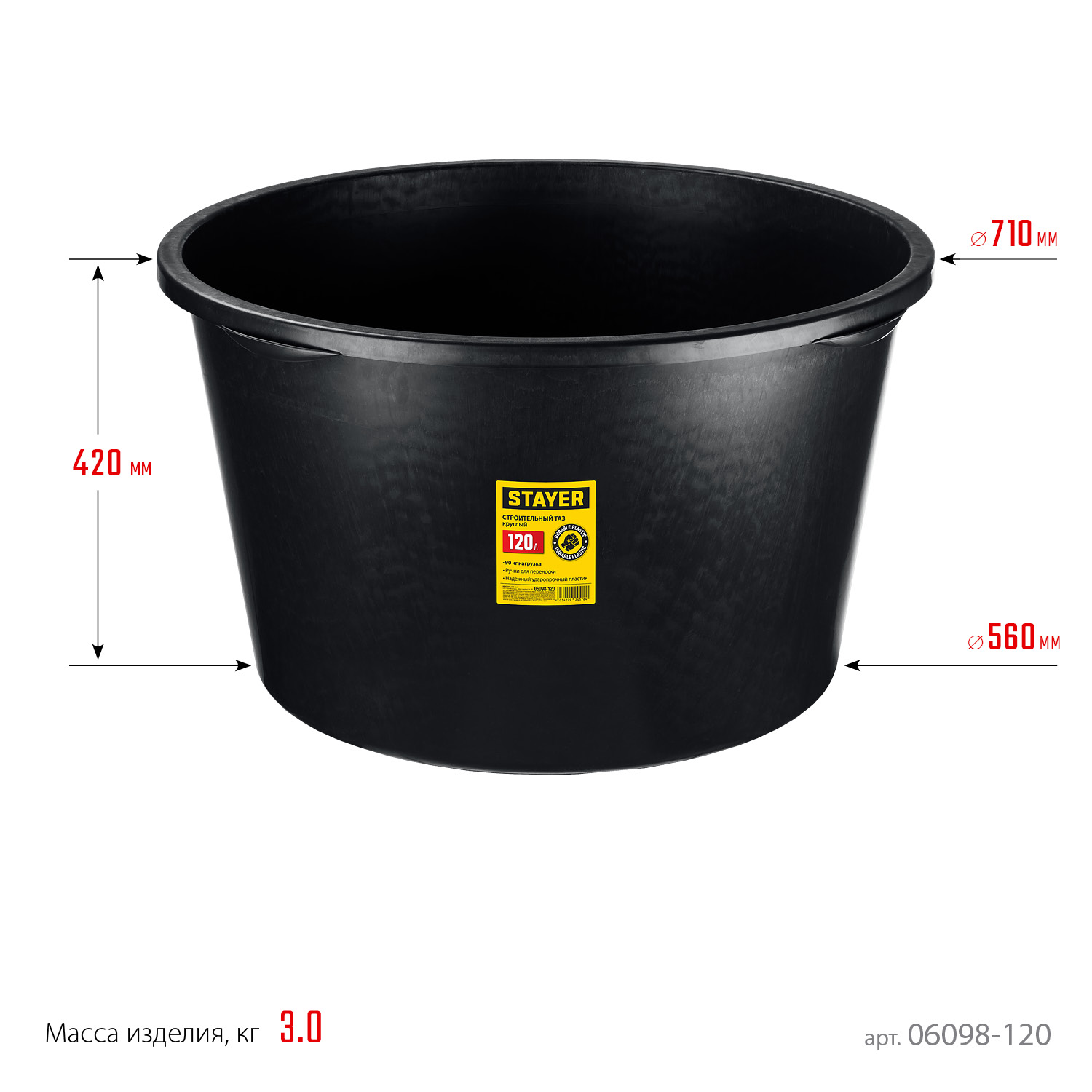 Таз строительный подходит для приготовления любых видов строительных растворов(клеевых, штукатурных, лакокрасочных) объемом до 120 литров. Ударопрочная пластмасса минимизирует количество сколов и повреждений. Имеет устойчивую конструкцию.