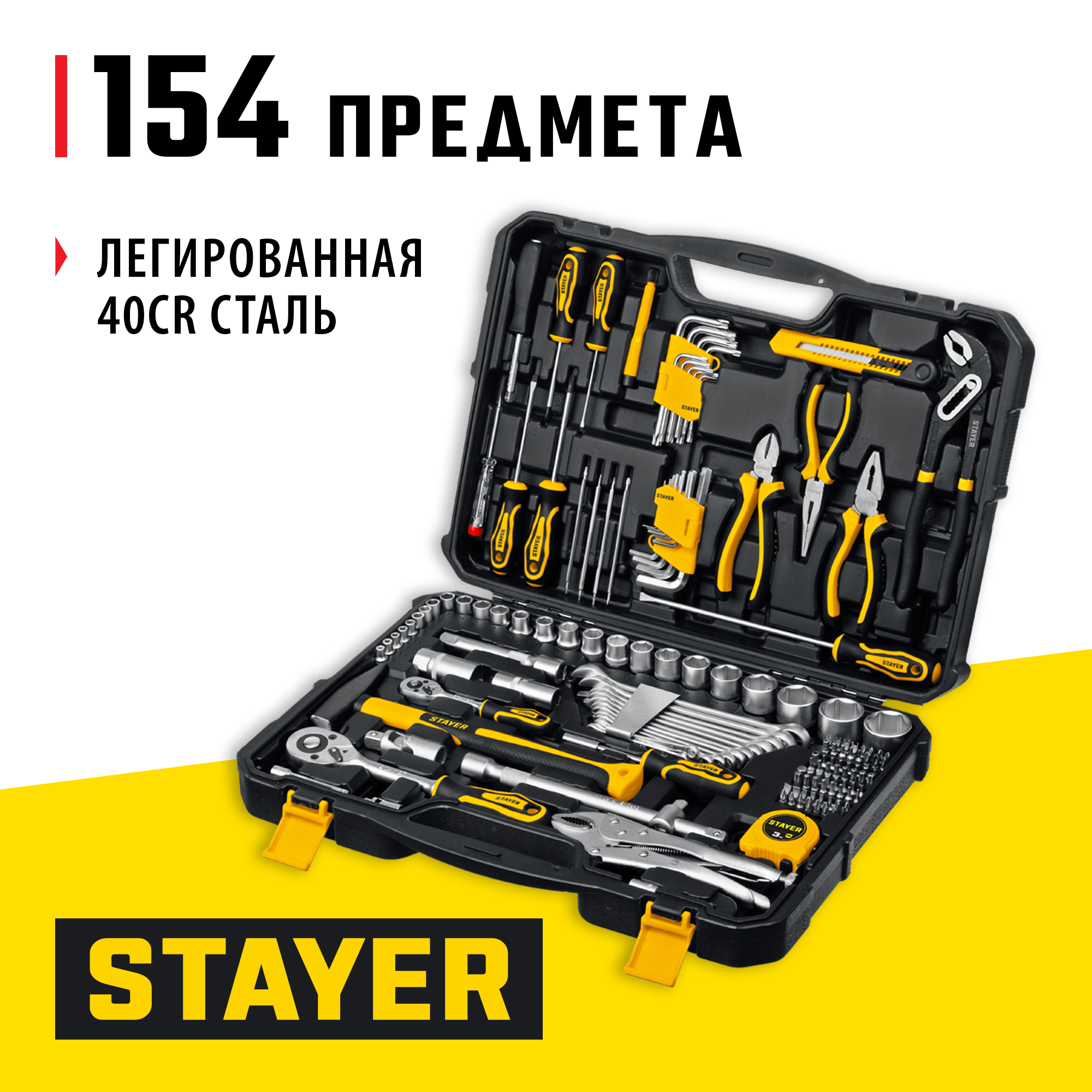 STAYER UNIVERSAL 150, 150 предм., (1/2″+ 1/4″), универсальный набор инструмента, Professional (27710-H150)