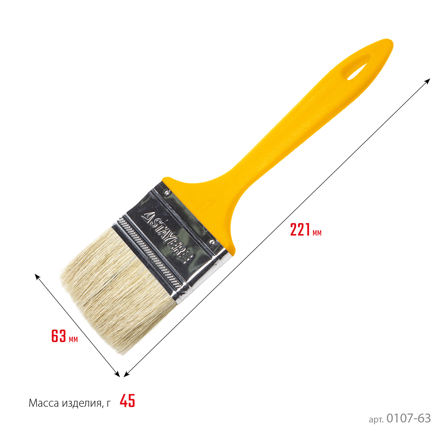 STAYER UNIVERSAL, 63 мм, 2,5″, светлая натуральная щетина, пластмассовая ручка, все виды ЛКМ, плоская кисть (0107-63)