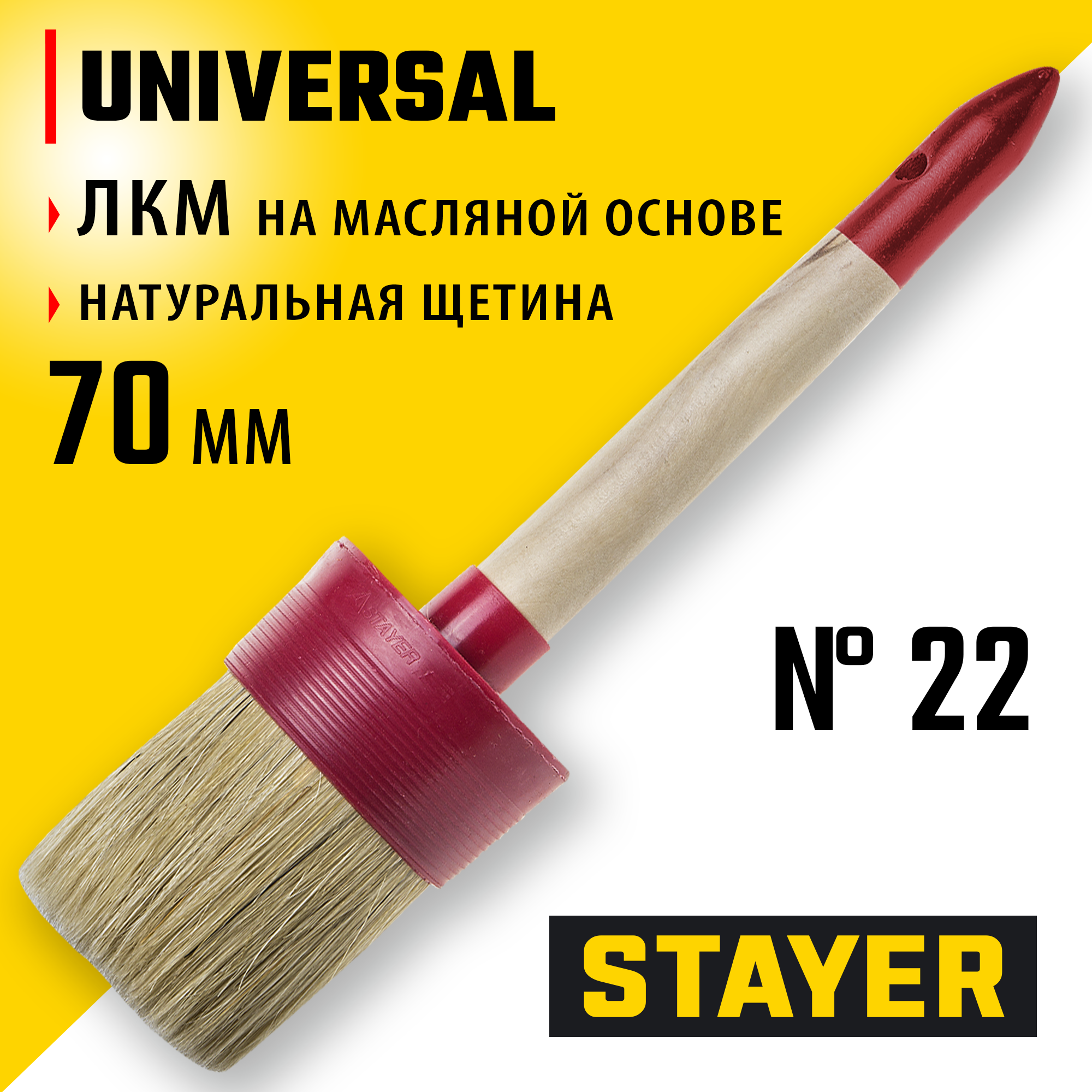 Натуральная щетина обеспечит оптимальное нанесение различных видов ЛКМ, щетина кисти надежно закреплена в пластмассовом корпусе, а наличие удобной деревянной рукоятки обеспечит комфортную работу